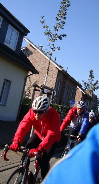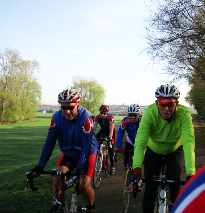 Das Ziel hiess Kevelar Kervenheim. Zu Elft, bei sonnigem Wetter und cirka 18°C gingen wir auf die Reise. Nicht nur ich, war etwas leicht geschürzt unterwegs. Die morgendliche Sonne und Frühlingsgefühle verleiten schon mal dazu, stofftechnisch unterdimensioniert zu starten. So rauschten wir also „cool“ dahin und traten in die Pedale.