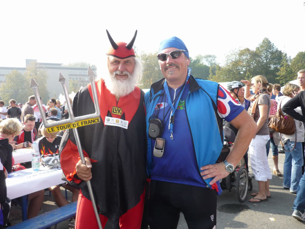 Auch Prominenz zeigt sich und kümmert sich um die kleinen Highlights - Marcel Wüst erklärte, wie die kleine Notdurft so dicht am Rad wie möglich am elegantesten zu erledigen ist - man lernt halt immer noch dazu. Wobei Marcel Wüst ein sehr angenehmer Radsportbegleiter