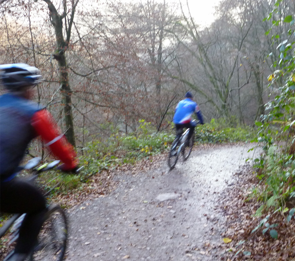 Die Anreise verlief angenehm ereignislos, den teuren Busparkplatz steuerten wir gar nicht erst an und um kurz vor Neun waren wir vor Ort. Thomas musste erstmal den Schlauch am Vorderrad wechseln, weil er sich eine Scherbe auf dem Weg zum Treff eingefahren hatte.Nach behobenem Schaden ging es auf Runde "3" und schnell stellten wir fest, dass wir schon mal auf dem Trail unterwegs waren und dass die Höhenmeter der Runde recht ansehnlich waren. Wetter und Aussichten waren aber wunderbar, demzufolge stiefelten wir munter gefühlt mehr bergauf, aber auch schon mal und flott bergab.Am Ende der Runde landeten wir in Bad Münstereifel bei Heino's Café und bei Flockensahne und Kaffee erledigten wir die erste Auswertung. Rund 1.000 Hm und 45 km bestätigten, dass die Runde "3" als "schwer" kategorisiert worden war, aber was tut's - alle sassen gesund und munter gegen 14:30 Uhr wieder im Auto. (fotos TT)Abwechslung im Trainingsplan statt Gashaus mal kurz über die Wupper-12.November 2011