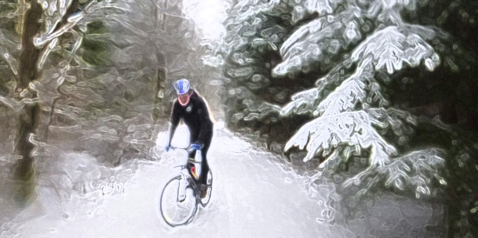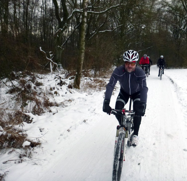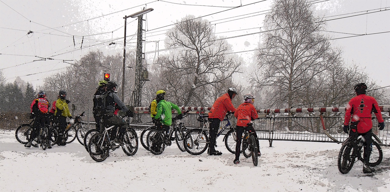 Zum Aufwärmen noch ein bisschen pumpen und los ging's. Die Runde, die sich an der vom Samstag orientierte, war super und durch den neu gefallenen Schnee noch ein bisschen anders als gestern. Das Reitercasino, in dem wir gerne unsere Mülheimer Runden beenden, war wegen einer Reitveranstaltung bis zum Bersten überfüllt. So gab es den Kaffee und Kuchen eben zu Hause.