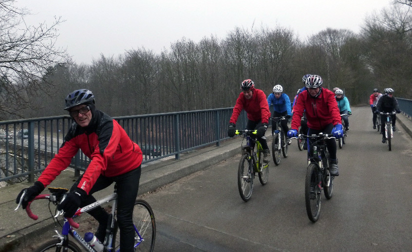 Sonntags war es wieder zahlreicher. In Dortmund Nord waren die Mülheimer zu sechst und auf der Dortmunder Runde war es halbwegs trocken und das hielt sich bis in die Mittagsstunden. Nach der Schnee- und Eisperiode war es mal wieder angenehm auf weitgehend trockenen Wegen "normal" zu biken. Die grosse Verpflegungskontrolle (die auf der grossen Runde 2-mal angefahren wurde) hatte die Versorgungsspitzen nicht gar so präzise kalkuliert, aber davon liessen sich die Biker nicht beeindrucken und absolvierten den Parcour ohne zu klagen - sogar kleinere Kulturelle Highlights wurden mitgenommen: