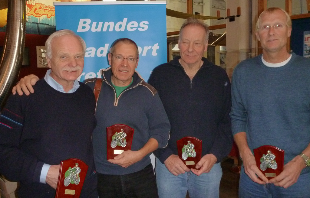 Im November und Dezember sinkt die Zahl der gefahrenen Kilometer, dafür steigt die Zahl der Veranstaltungen, die die Sieger ehrt und Schleifen, Pokale und Urkunden für ausserordentliche Leistungen unter das Radvolk bringt.