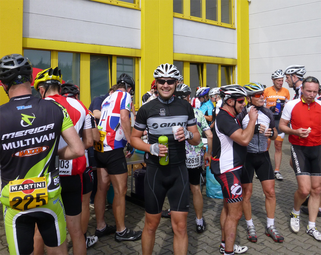 Macht natürlich nichts und die Verbindung von Asphalt und Feldweg machte die Strecke schnell, weil nichts matschiges an den Stollenreifen zerrte. Dem Veranstalter sei ein besonderes Lob gewidmet. An allen kritischen Stellen waren Werner Kollegen postiert, die Strassenquerungen sicherten. Die Beschilderung war hervorragend und wurde durch Warnschilder an den kritischen Stellen ergänzt, um Fahrfehlern vorzubeugen.