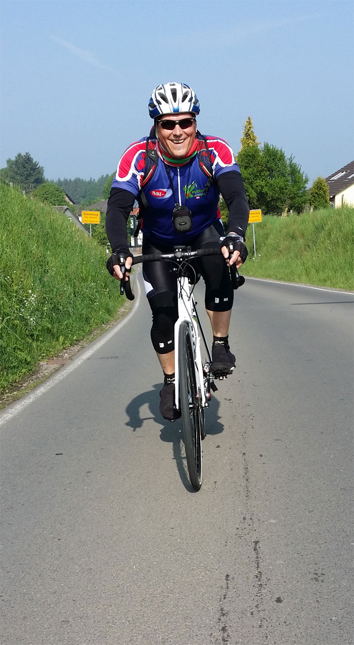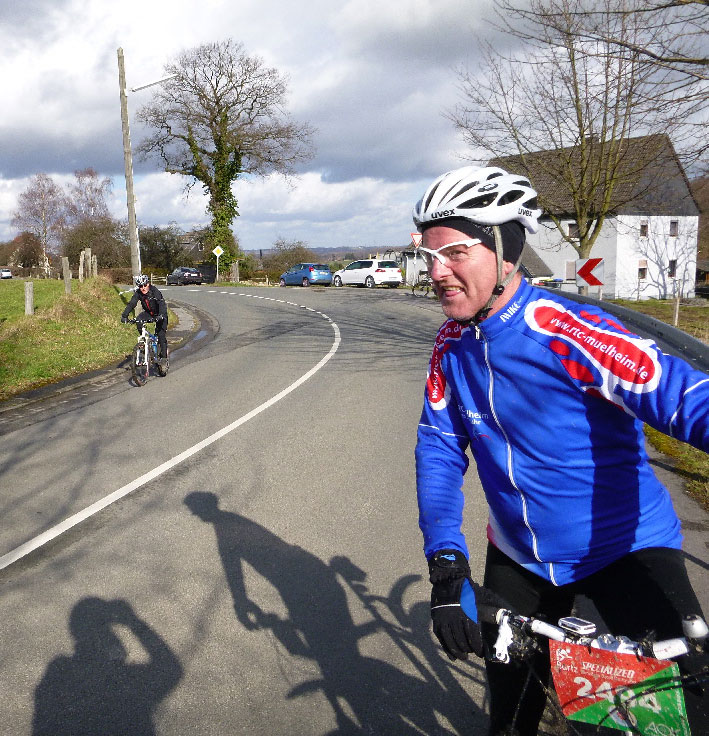 Thomas litt etwas unter den Höhenmetern und auf dem letzten Anstieg, der nach Bensberg hinaufführte, ließ er es sehr ruhig angehen und wir verloren ihn 5 km vor RTF-Ende aus dem Auge.
