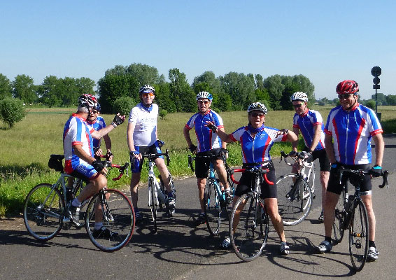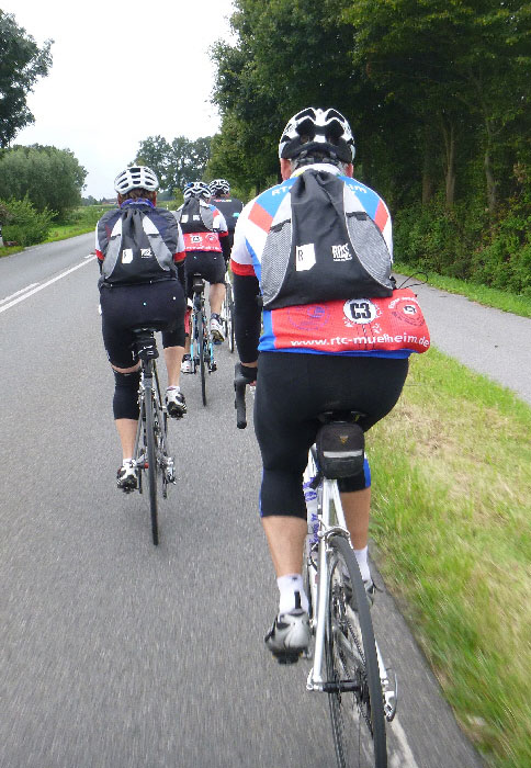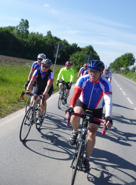 Unser neuer Radsportkollege René, dazu Thomas, Felix, Roland und Klaus kamen so leicht verspätet auf die Strecke und tauchten ein in die Münsterländer Mocke, das Wetter wurde aber sehr schön und wenn die Brille nicht mit zu vielen brauen Punkten zugematscht war, konnte man mit grünen Wiesen und blauem Himmel Urlaubsgedanken nachhängen.