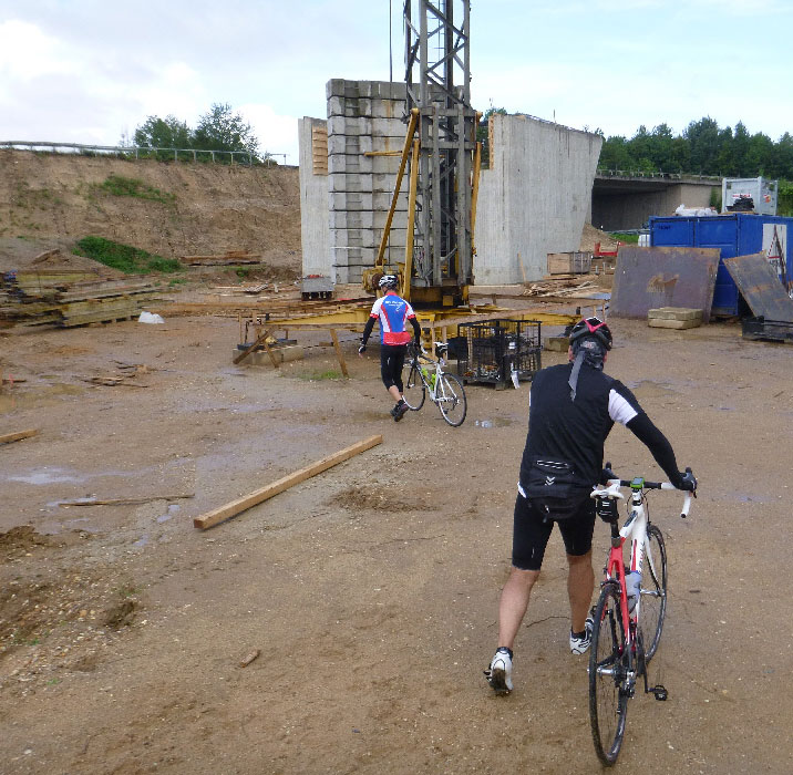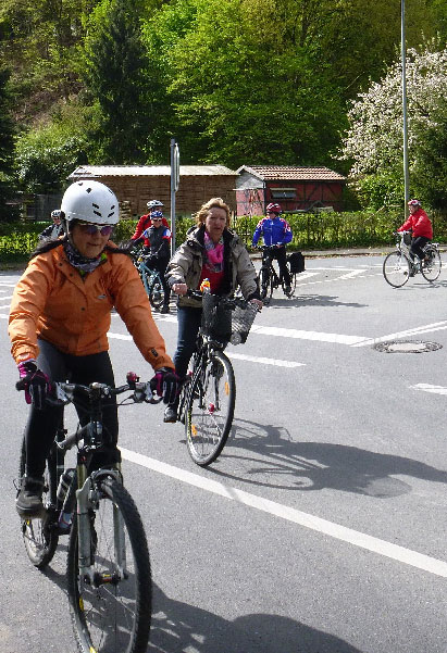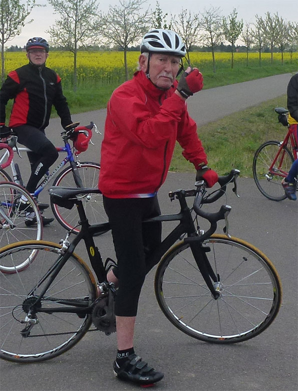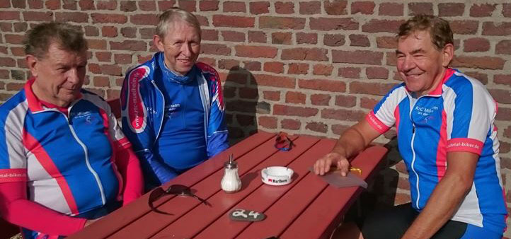 Auf der A44 Brücke überholten wir die kleine Seniorengruppe mit Lothar und Robert. Lothar hatte seinen Handbruch noch nicht ganz auskuriert, aber Radfahren ist für ihn die beste Medizin.