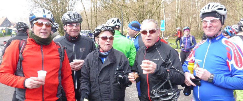 Wir genossen noch einmal Kaffee, Kuchen, Weizen und Würstchen und das Gespräch drehte sich um die Planungen von Schwalmtal bis Mallorca. In der nächsten Woche stehen die ersten RTFs auf dem Plan, der Winter ist vorbei und hat eigentlich nie richtig angefangen. Für uns Radfahrer war es jedenfalls top. Die WWBT war trotz kleinerer Pannen ein toller Erfolg und die Teilnehmerzahlen können sich sehen lassen: Mehr als 2.800 Starter verzeichnete die Serie und insgesamt 7.815 Einzelstarts wurden registriert, bei einem Frauenanteil von 21%. So kam es wohl, dass weit mehr Tassen und Buffys benötigt wurden als bestellt waren. Die Mülheimer waren schon mal engagierter dabei, aber die Westfälischen Veranstaltungen verursachen einen großen Aufwand an Autobahnkilometer und ehrlich, wenn nicht so schönes Wetter gelockt hätte, hätte ich mir vielleicht doch die eine oder andere Runde gekniffen.