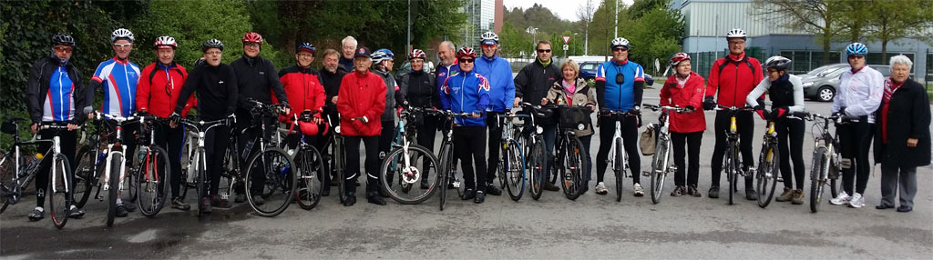 Mit einem bunten Aufgebot ging der RTC auf den Karfreitagsausflug 2014. Klaus-Dieter T. hatte eine familienfreundliche Runde ausgetüftelt. Nach dem traditionellen Gruppenfoto durchquerten wir mit unserem Tross von mehr als 20 Teilnehmern Saarn, Lintorf, Mintard und folgten der Ruhr Richtung Reitercasino. Ein Sohn, eine Ehefrau und sogar 2 radbegeisterte Ehepaare, das sich zur Teilnahme entschlossen hatte, ergänzten das Mitgliederaufgebot auf dem Weg durchs Mülheimer Hinterland.