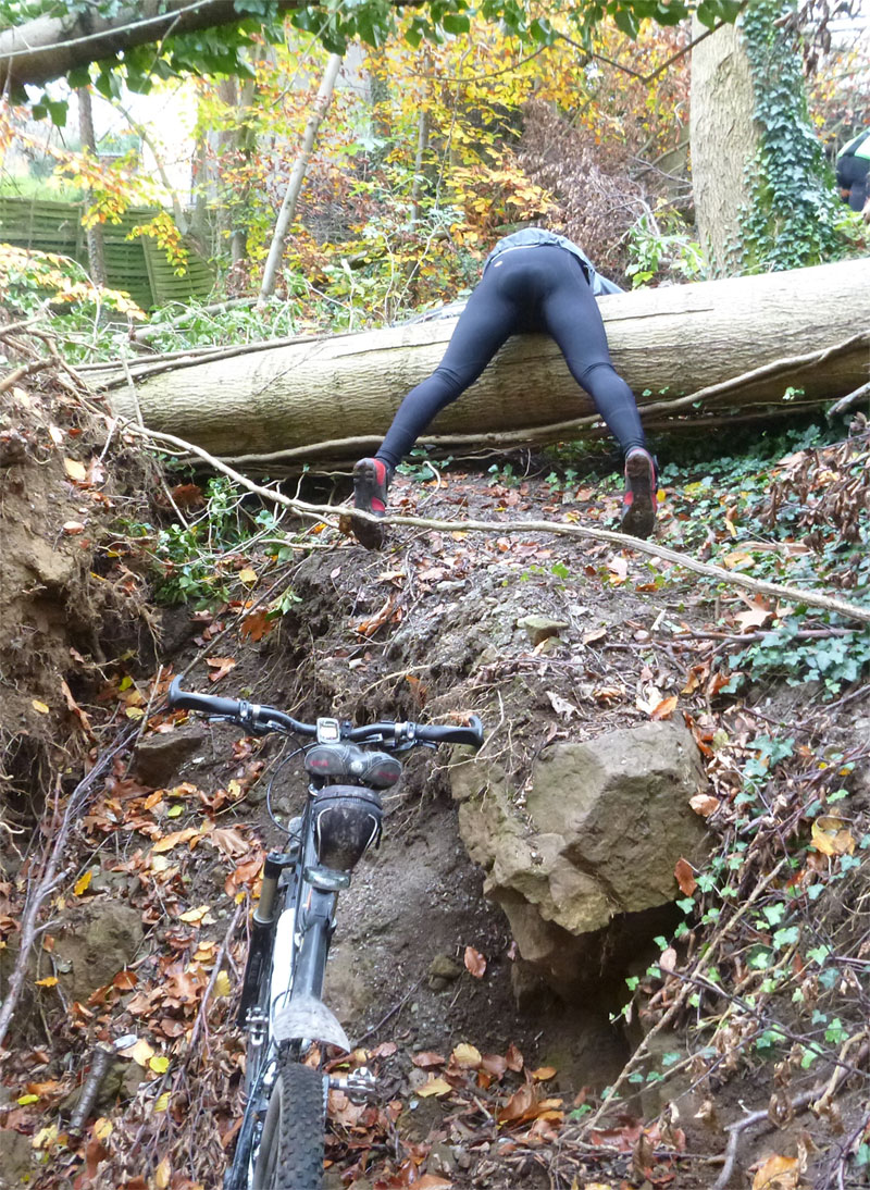 Unterwegs geht es uns häufiger so, dass auch breitere Wege immer noch dramatisch dicht sind, selbst der Essener Stadtwald hat noch zahlreiche Wege die nicht befahrbar sind. Unsere Runde wird so zur Probefahrt, aber es macht trotzdem Spaß die Stollenreifen mal wieder halbwegs richtig zu bewegen. Der Winter wird wohl arm an Trails werden, weil immer nur ein schönes Stück Weg lockt, aber dann die Wege geblockt sind und wenn man am ersten Hindernis vorbeikommt, dann geht es spätestens nach dem 2. oder 3. doch nicht mehr weiter.