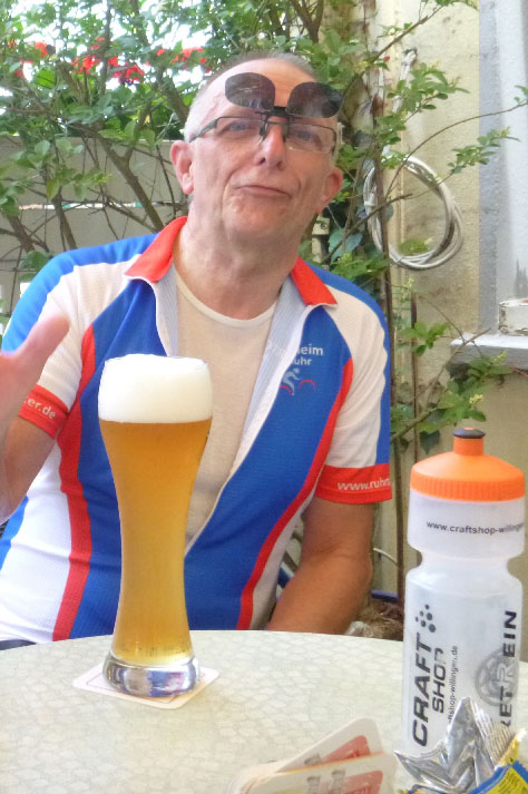 Auf den Rückweg trafen wir Manfred, der auf der Suche nach einer 3. Alternative spät dran war. Wir wählten einen Weg Richtung Ruhr und fuhren (ohne Friedel) auto- und ampelfrei nach Hause. Mit einer Weizenbierpause kamen wir am Ende auf 110 km.