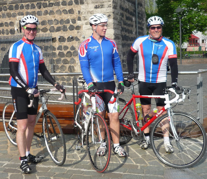 Roland, Felix und Thomas sind zusammen nach Köln gefahren. Das Ziel einen schönen Renntag zu erleben und zwar nicht als Zuschauer sondern als Teilnehmer. Marius und Rainer vom RTC sind auch nach Köln gefahren. Pünktlich um 11:00 Uhr wird das Rennen gestartet. Es geht direkt zur Sache. Alle sind hoch motiviert und drücken ordentlich auf das Pedal. Das Wetter ist prima, die Sonne scheint, die Temperaturen sind optimal. Wie in den Jahren zuvor ging das Rennen auf der bekannten Strecke vom Kölner Rheinauhafen nach Odenthal, Bechen, Bergisch Gladbach und zurück zum Harry-Blum-Platz Köln. Das Rennen verlief für alle erwartungsgemäß, alle konnten ihre Zeiten verbessern oder gute erste Ergebnisse abliefern, für Thomas lief es nicht so gut, trotz gut gepflegtem Material brach in dem extra für das Rennen angeschafften Radsatz eine Speiche und verhinderte die Wiederholung der Ergebnisse vom Vorjahr.