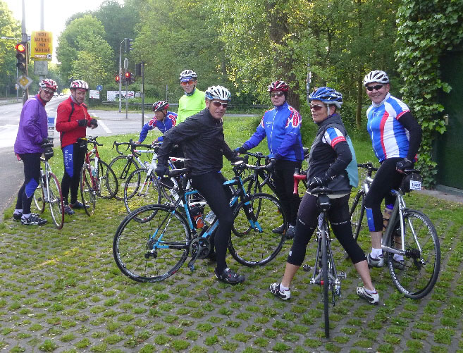 Acht Radsportler sammelten sich am Treffpunkt, darunter drei Gäste.