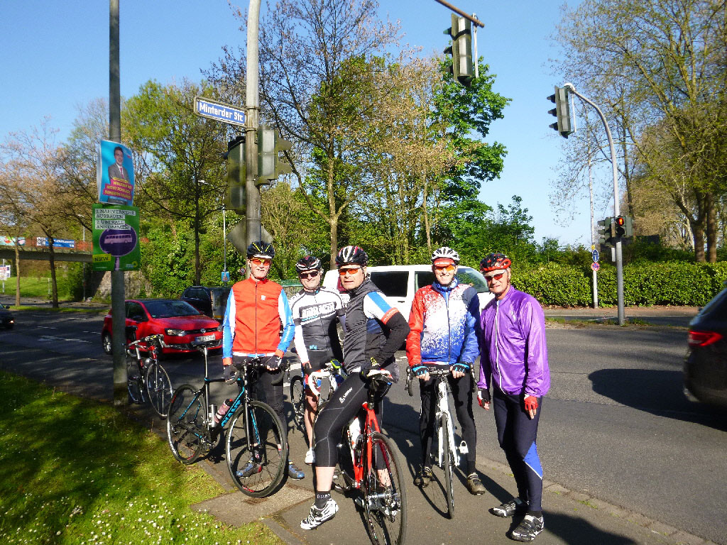 6 RTC-ler trafen sich am Gashaus. Wir warteten 5 Minuten, aber die Gruppe wurde nicht mehr größer. So starteten wir in 2 kleinen Gruppen. 2 von uns mussten noch an der Frühform arbeiten. Wir fuhren wellig über Nierenhof nach Hattingen und trafen am Startpunkt noch weitere Mitglieder des Vereines. Die Dümptener Kollegen wollten wohl flach nach Hattingen.