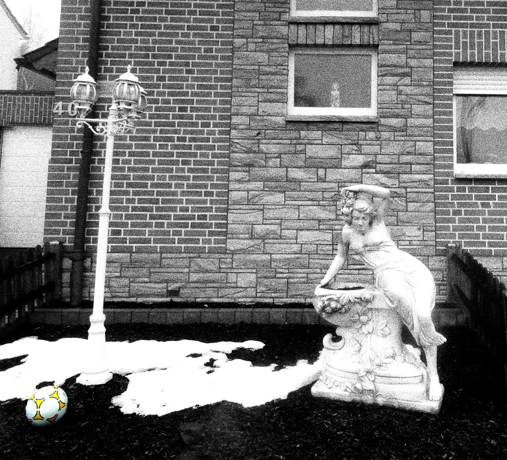 Ja, wir sind Kulturhaupstadt: Ensemble aus: Gaslaterne Alt-Paris, Fragment des Trevi-Brunnens sowie Gebrauchsgegentand einer Populärsportart im Ruhrgebiet.