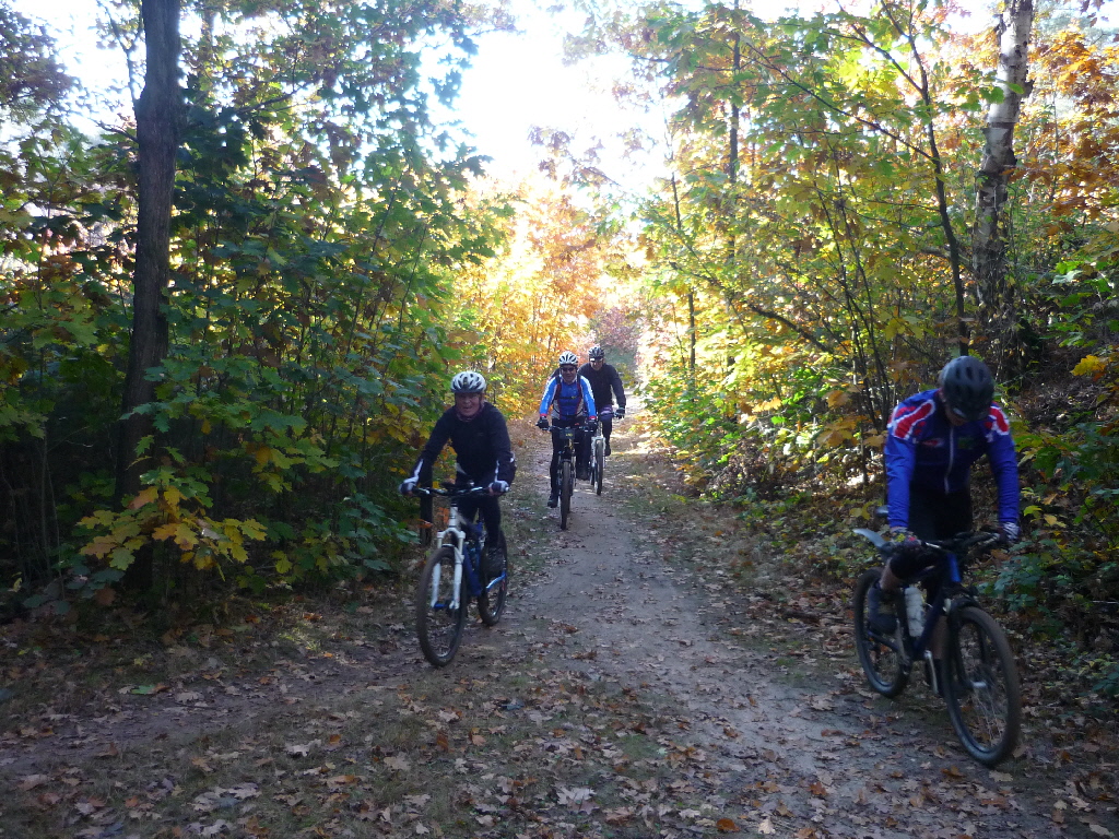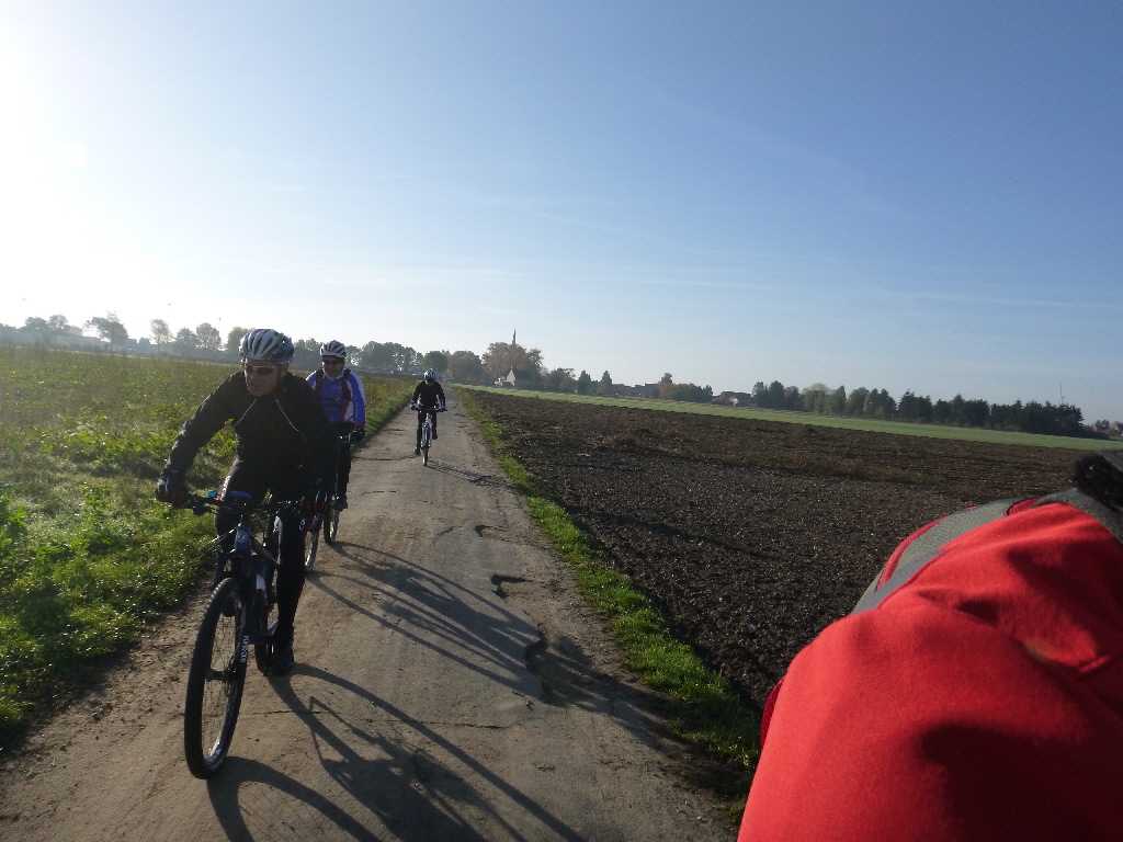 weiter von Seite 1 Heut waren wir zu fünft: Thomas, Felix, Jochen, Brigitte und ich. Es gelang uns diese Gruppe über die gesamten 56 km zusammen zu halten und wir hatten alle Spaß. Am Start wurden wir als Wegberg-Gäste etwas unfreundlich angemotzt, weil wir das Auto am Rand der Straße mit 2 Rädern auf den Gehweg setzten. Der restliche Platz war zwar reichlich, aber die mosernde Dame war wohl mit dem falschen Fuß aus dem Bett gekommen. Der Start am Fussballplatz war ganz gut besucht, schnell waren wir (ohne scan&bike) eingecheckt und dann ging es auf die Runde. Zuerst durch die Felder und dann in den "Nationaal Park de Meinweg". Kreuz und quer mal über breite Wege und dann wieder durch kleine Trails auf denen man sich schmal machen musste um langem Gras und wuchernden Zweigen auszuweichen. Nach ca. 20 km erreichten wir die zentrale Kontrolle, die an einem Touristentreff (Boshut) angesiedelt war. Thomas und Felix mussten bisweilen kleine familiäre Unstimmigkeiten besprechen und derweil durchpflügten wir den Wald bis kurz vor Roermond, drehten rückwärts und verließen 2-mal den Track, fanden aber doch wieder zurück auf den rechten Weg. Brigitte hatten einen guten Tag erwischt und machte über lange Strecken die Pace und wies den Weg mit Schildern und Unterstützung des Garmin. Knapp 20 km später war die Boshut wieder erreicht, kleine Pause mit Kalorienauffrischung und dann nochmal rund 15 km bis wir Klinkum wieder in Sichtweite hatten. Das Wetter hatte toll mitgespielt und ein bisschen platt waren Kuchen, Kaffee, Würstchen und Weizenbier eine gute Erholungsbegleitung. km |