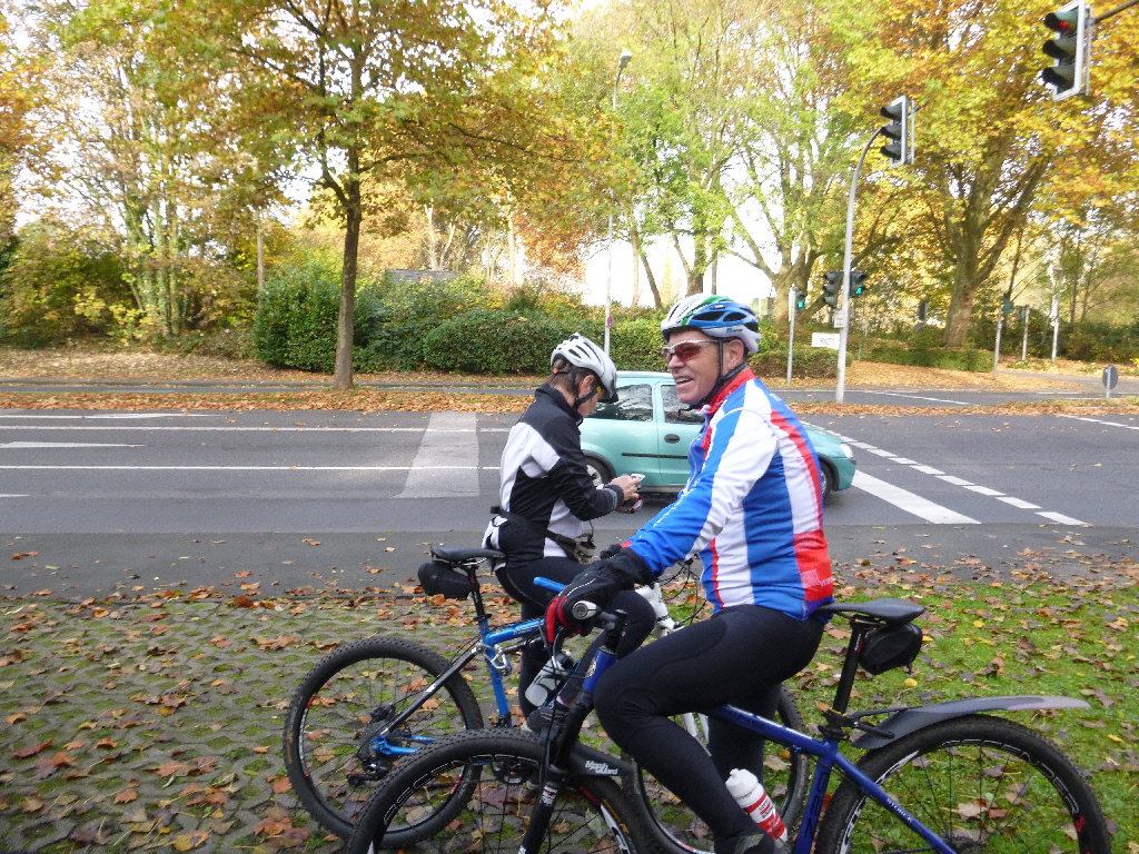 weiter von Seite 1 Das gelang nur mäßig und bei den Hugenpots gab es dann Streit, der damit abgeschlossen wurde, dass wir uns auf eine lockere Version verständigten. Wir steuerten die Trasse nach Velbert an, bogen Richtung Golfplatz ab und fuhren recht locker zur Auermühle. Die Pause an der Auermühle verkniffen wir uns, weil das Preis/Leistungsverhältnis nicht stimmt und der Trubel an so einem Tag beeindruckt. Der Rückweg führte uns über Lintorf, die 6-Seenplatte bis in den Duisburger Wald, nahe beim Domizil der Müllers. Kaffee und lockeres Gespräch schlossen den Ausflug ab. ….ein gut genutzter Herbsttag am Beginn des November. km |