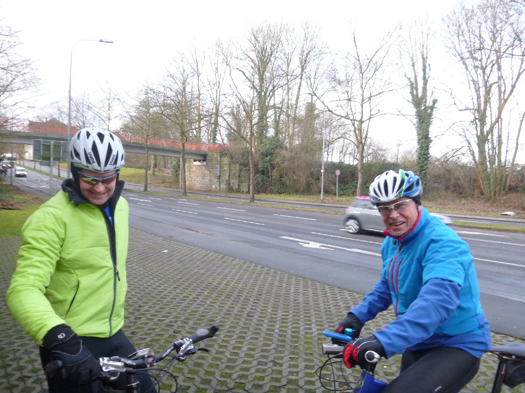 Marius hatte sich wieder angeschlossen und so waren wir zu Dritt. Thomas hatte am Freitag noch eine Bahn-Einheit zwischengeschoben und war etwas indisponiert, hielt aber tapfer durch. Richtung Auberg nach Kettwig und dann durch den Ratinger Wald waren wir gut unterwegs. In einer Mischung aus Waldwegen und ein paar Trails machten wir rund 40 km und da alle etwas in Zeitnot waren, fiel die Kaffeepause aus. Am Bahnübergang in Ratingen pflegten wir Kommunikation mit dem Stellwärter, der zuerst 3 Züge und dann uns und einem kleinen Bagger die Strecke freigab. Nach dem Entenfang war der Weg nach Hause fast im Schlaf zu finden. Nach der Radreinigung setzte der Regen ein – kalt und unangenehm – also prima Timing und für den Winter eine ideale Übungseinheit. km