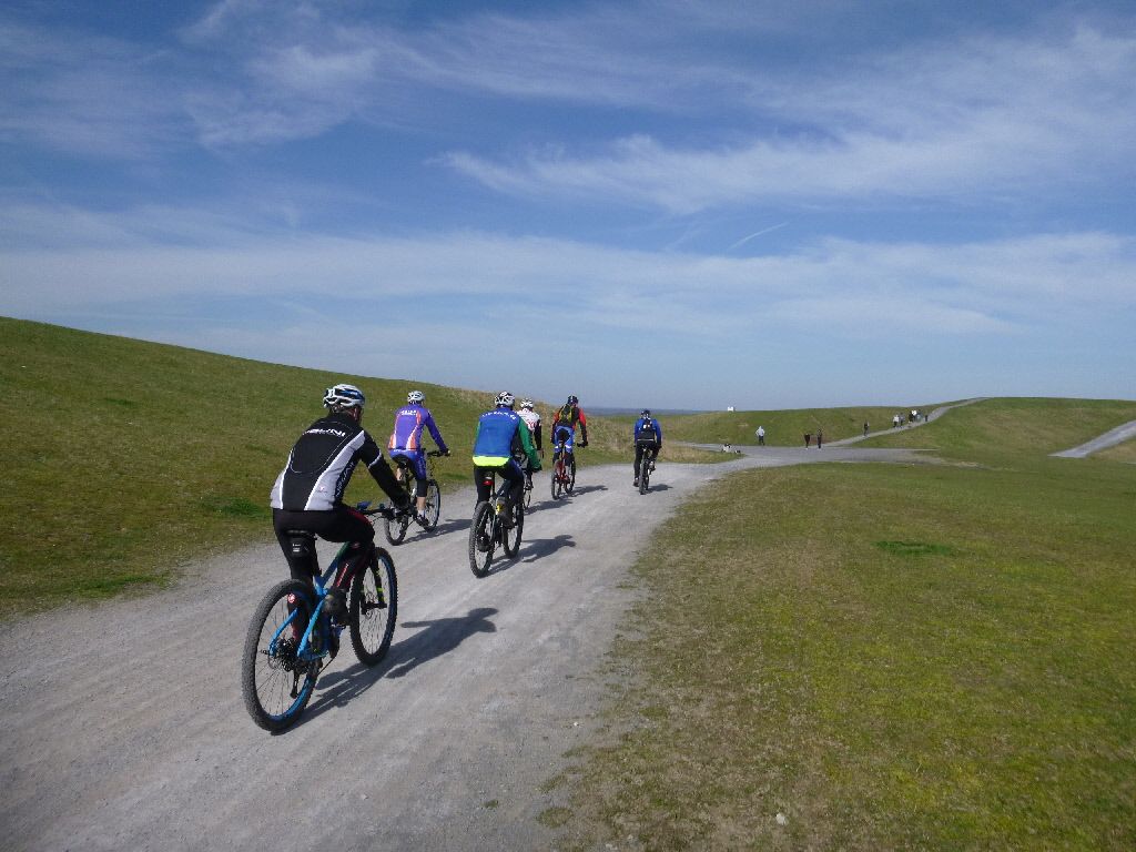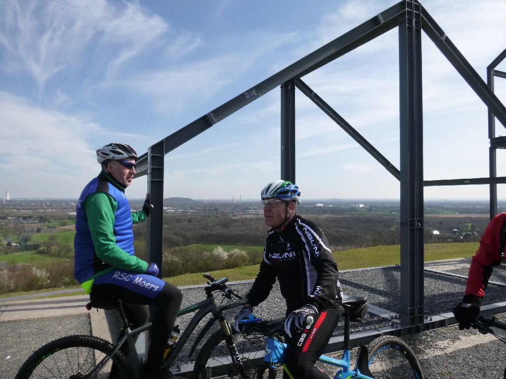 Herbert Lettmann hatte mal wieder zur Krefelder CTF-Permanente mit Start am Freizeitpark Klingerhuf geladen. Mit 8 Teilnehmern war der Andrang nicht zu mächtig. Andreas Brembeck war ebenfalls angereist, hatte aber übersehen, dass es sich um eine Cross-Variante handelte und machte die Runde mit dem Straßenrad - abgesehen von 2 Wurzelpassagen blieb er souverän auf dem Rad – da es nicht nur schön, sondern auch trocken war, war die Runde auch mit 20-er Rennradreifen fahrbar. Allerdings ist er im Vorteil als versierter Cross-Fahrer. Am Klingerhuf hatten wir Konkurrenz von den Skatspielern, die aber eher durch ordentlich Tabakkonsum auffielen. Meist angeführt von Herbert war es eine Geniesser-Runde, ohne Stress, locker und mit dem schönen Ausblick von Grubenlampe auf der letzten Halde auch touristisch mit Highlights.