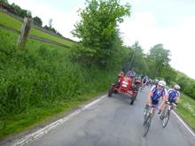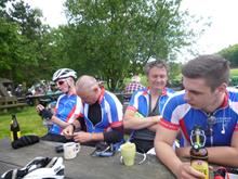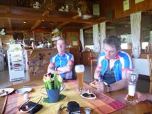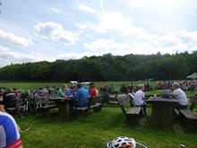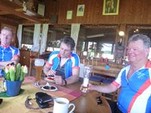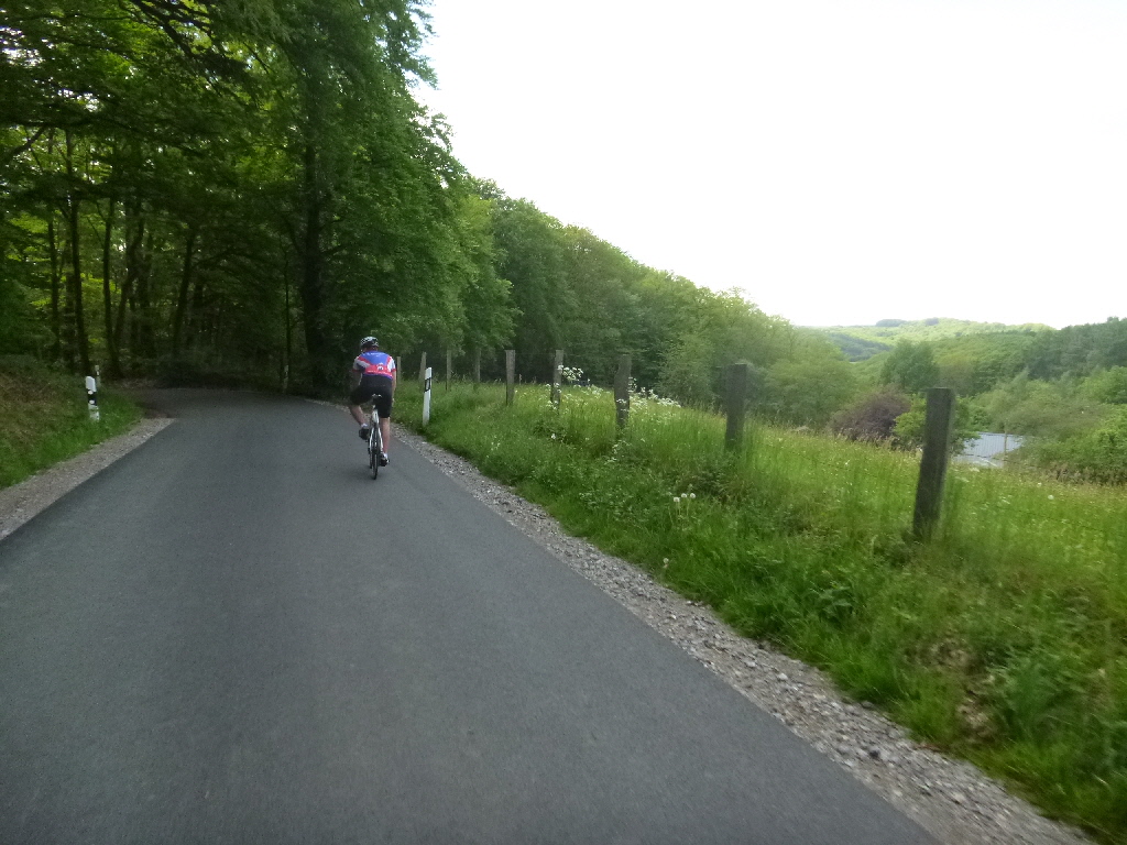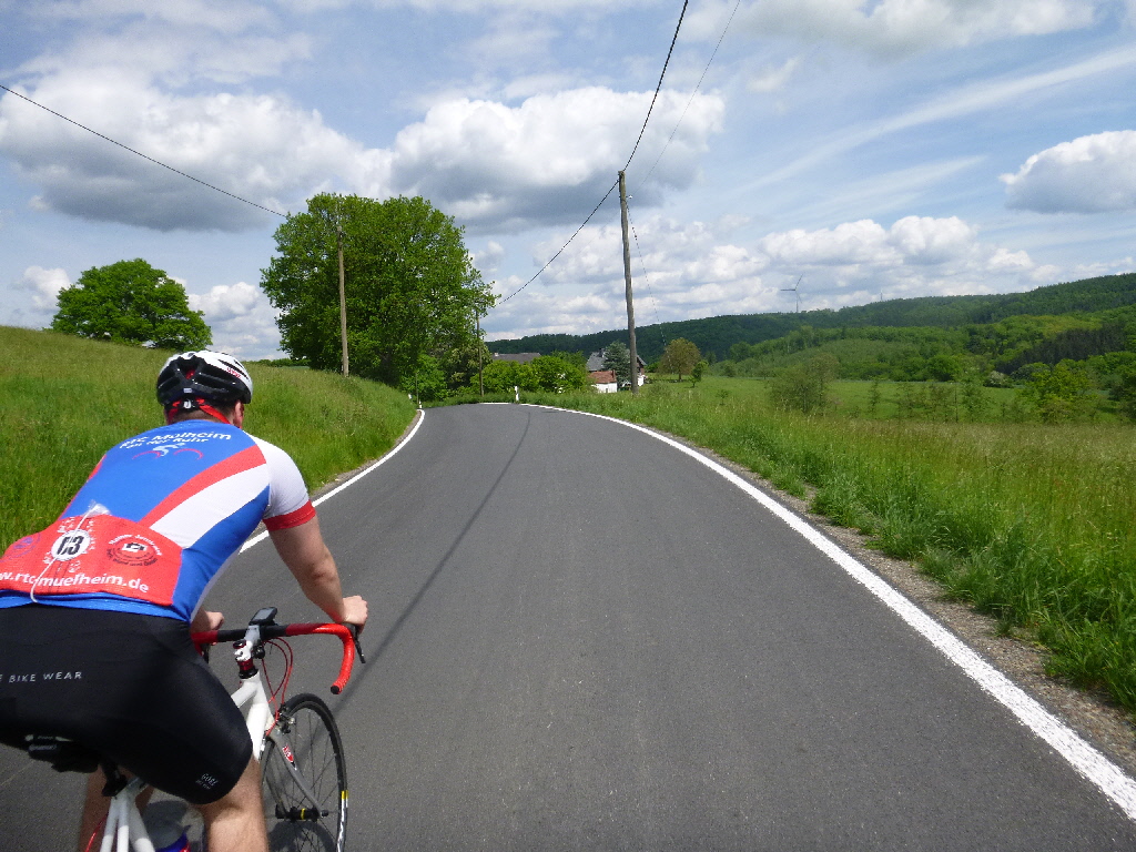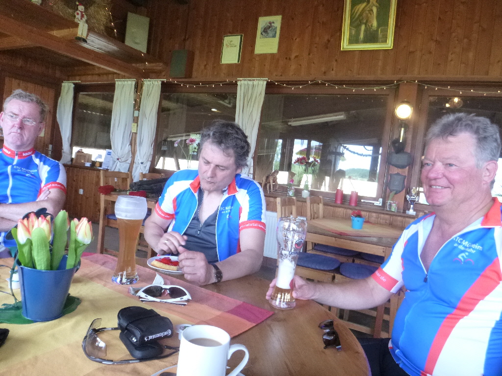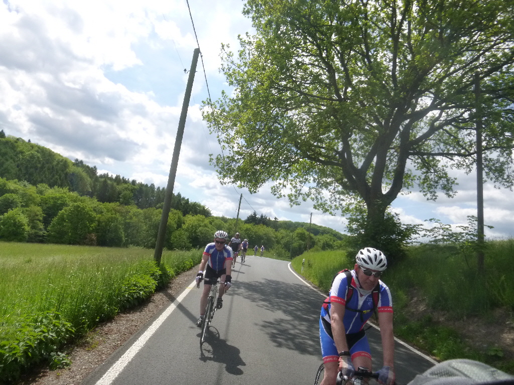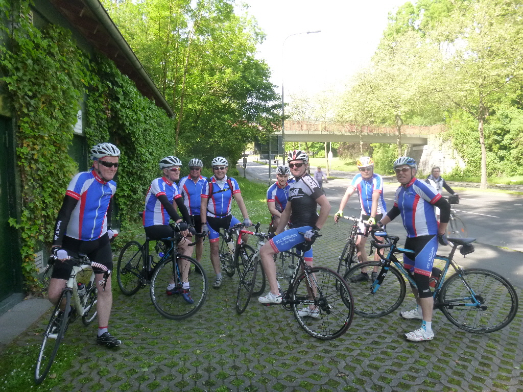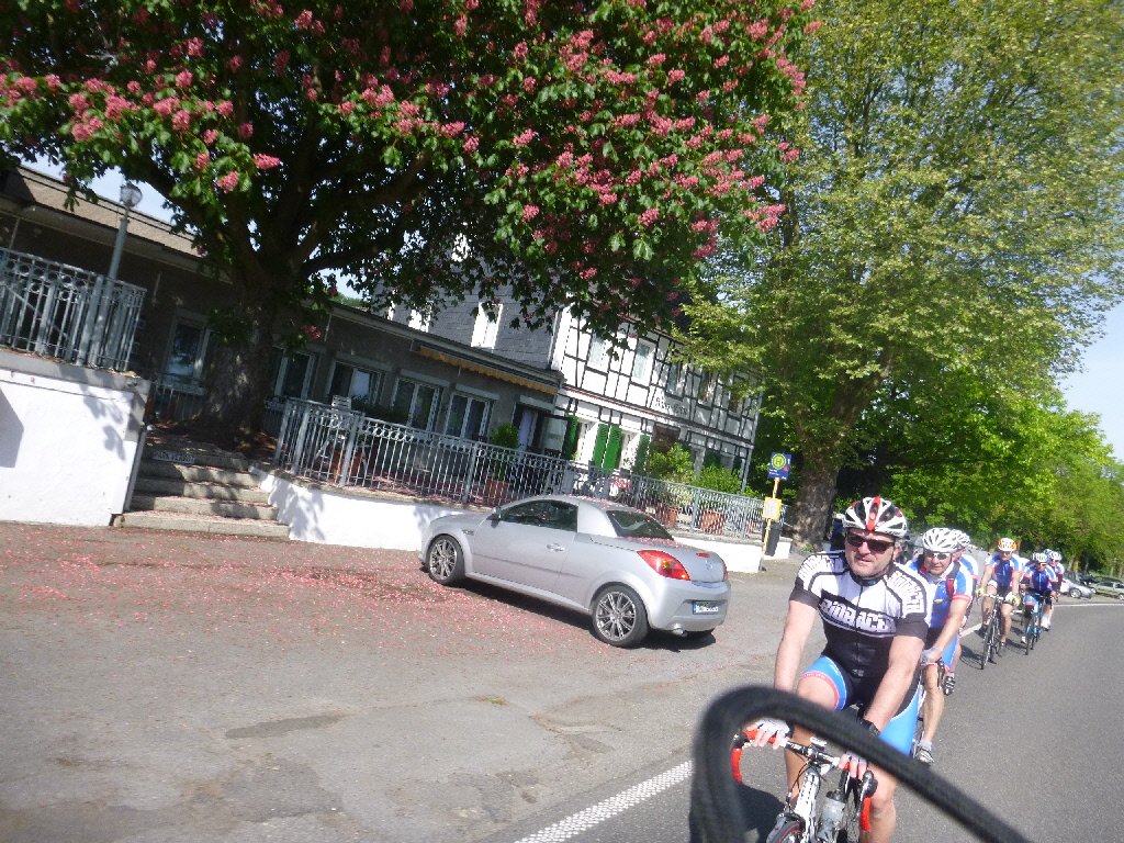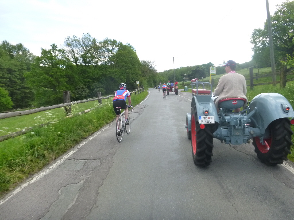 Unsere Straßenpermanente führt durch schöne Landschaft. Langenberg, Felderbach, Elfringhaus sind klangvolle Namen, die Höhenmeter versprechen und zudem relativ verkehrsarm zu befahren sind. Ein wenig Pech hatten wir heute, weil das Wetter die Traktoristen mit den Oldtimern auf die Straße gelockt hatte und der umweltunfreundliche Ausstoß unsere Lungen hinauf zum Berger Hof ziemlich heftig traktierte. Jochen scherte unterwegs wegen der Abgase aus und verfuhr sich dann. Unser Kontaktanruf lokalisierte ihn später am Baldeney-See und er fand dann allein nach Haus. Roland litt unter Kettendefekt und wir verloren ihn in Nierenhof – Kai-Uwe inklusive – Immerhin genossen wir den Kaffee im Reiter-Casino doch noch gemeinsam. 9 Radfahrer waren heute unterwegs, insgesamt lief es gut, auch wenn es inzwischen offensichtlich nur noch wenig Erinnerung daran gibt, dass auf der Höhe eines Anstieg gewartet wird, bis alle wieder beisammen sind, ein kleiner Blick nach hinten und ein paar Tritte auslassen dazu führen kann, dass einige Nachzügler Löcher zufahren können. Immerhin wissen wir sicher, dass alle heil nach Hause kamen, die meisten Teilnehmer ihre Punkte auf die Karte brachten und mit rund 1.000 Höhenmeter und 85 km auch sportlich was auf der Habenseite blieb. km