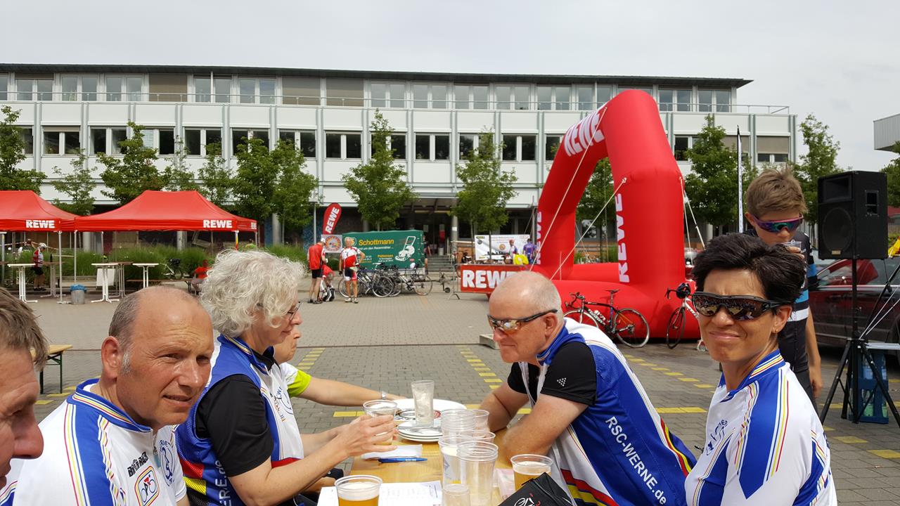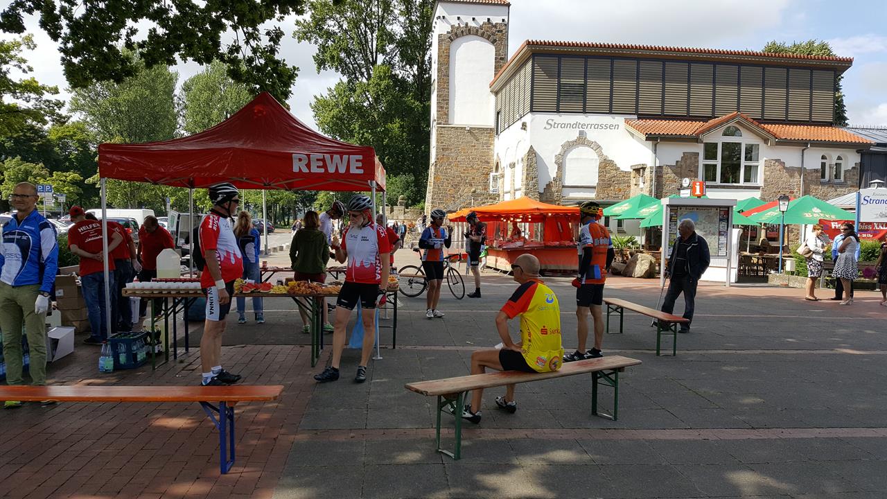 Herbert und ich buchten Mittwoch bis Freitag für Sitzung und 3 Punkterunden. Die Regenmeldungen von Montag bis Dienstag führten zu einer leichten Modifikation: statt morgens um 4 Uhr aus dem Bett zu fallen legten wir den Start auf 9 Uhr und waren dann mittags in Hannover. Das Wetter hatte sich soweit beruhigt, dass ein Start möglich gewesen wäre, aber wir nachten uns erstmal einen netten Nachmittag und prüften die Qualität des Mensa-Essens. Am Donnerstagmorgen standen wir dann am Start. Es wurde kolportiert, dass am touristischen Höhepunkt der Tour –der Marienburg- streckentechnisch Änderungen vorgenommen worden waren. Leider wurden sie nicht besonders konkret erläutert. Also ging es erstmal hinauf zur Burg, die zweifelsfrei sehenswert ist. Georg V. ließ sie erbauen und schenkte sie seiner Frau zum 39. Geburtstag. Die Geschenke sind heute doch etwas kleiner geworden. Am Ende der Abfahrt wurde dann der Grund für die gravierende Streckenänderung ersichtlich. Es hätte die Leine überquert werden müssen – über die Brücke ging es noch, aber die weiterführende Straße war auf Sichtweite überflutet und das Wasser reichte teils bis an das obere Blech der Leitplanke. Statt links ging es dann halt rechts und nach ca. 37 km war die erste Kontrolle erreicht. Herbert tat sich schwer und klagte über verschiedene Zipperlein. Sein Trainingsstand war noch deutlich schlechter als meiner und mit Mühe erreichten wir die 2. Kontrolle. Andreas und Lutz, mit denen wir gestartet waren, hatten wir längst ziehen lassen müssen, jetzt begab sich Herbert auf die Kurzversion ins Ziel und ich rollte auf dem 100-er Teil weiter. Eine endlos lange Gerade hatte den Vorteil von viel Rückenwind, nahm aber kein Ende und irgendwann mussten die Schilder ausgegangen sein. Sehr spät kam dann aber doch wieder ein Schild und der Garmin-Track war für kurze Zeit wieder nutzbar. Verwirrung kam auf als hinter einer Linkskurve erneut der Anstieg zur Marienburg auftauchte – war den Veranstaltern die Landschaft ausgegangen oder war die Beschilderung so verwirrend, das man ungewollt ein zweites Mal auf der Runde auskam ? Egal, fragen ging nicht, also auf in die 2. Runde. Undso war es denn auch korrekt. Marienburg, 1. Kontrolle, 2. Kontrolle und dann heimwärts zum Stützpunkt. Nach 113 Kilometern war es vollbracht und die eigentümlichen Doppelungen waren tatsächlich der Plan, der vom Hochwasser erzwungen worden war. Am schönen Start- und Ziel-Gelände wurden dann die Erfahrungen ausgetauscht und ein lockeres Bier genossen. Am Freitag hatte Herbert die Flügel gestreckt und einen Sightseeing-Vormittag geplant. Ich ging auf die Reise zum Steinhuder Meer. Wegen Hochwasser wurde der Start im geschlossenen Verband vorgenommen: Mehrere Gruppen mit streckenkundigen Guides an der Spitze durchquerten die Innenstadt von Hannover und führten die Radfahrer auf die modifizierte Strecke. Es wurde ein durchaus arbeitsames Unterfangen. Bildschöne Straßen, geradlinig mit Sicht bis zum Horizont und dazu ein zünftiger Gegenwind waren nur auszuhalten, weil die Gruppe zusammenblieb und jedes Ortsschild von einem Jungspund aus der Werner Gruppe mit Vollgas angesteuert und meist auch gewonnen wurde. Am Steinhuder Meer war eine wunderbare Kontrolle aufgebaut, die als gesundes Buffet kaum zu überbieten war. Der 2. Teil der Tour war weniger stürmisch, dafür waren die Windschatten aus der großen Gruppe nicht mehr verfügbar. Ein dänischer Kollege mühte sich als Ersatzmann und ich war hin und hergerissen, diesem Hinterrad zu folgen, weil es irgendwie etwas zu flott war. Immerhin kamen wir doch gemeinsam ins Ziel- Punkt 13 Uhr erfolgte der Abpfiff des Radsportanteils. Dusche, ein alkoholfreies Bier und ein paar nette Gespräche mit Radsportkollegen rundeten den Tag ab. Um 14:30 Uhr war das Auto gepackt und gegen 17 Uhr überquerten wir die Mülheimer Stadtgrenze. Die jährlichen Radsporttreffen haben den Charme, das man die Kolleginnen und Kollegen in entspannter und freundschaftlicher Atmosphäre trifft, jeder hat Zeit- im Unterschied zu den gebeutelten Punktejägern auf den RTFs, die die Jagd möglichst flott zum Ende bringen wollen und gehetzt zur Heimkehr drängen. Auch wenn der Zenit des Hochwassers noch aussteht, während ich diese Zeilen schreibe und die exzentrischen Wetterunbilden massiven Einfluss auf die Veranstaltung genommen haben, wird jeder Teilnehmer mit einem positiven Gefühl abreisen. Sportliche Beanspruchung und entspannte Freizeitgestaltung – was will man/frau mehr ? km