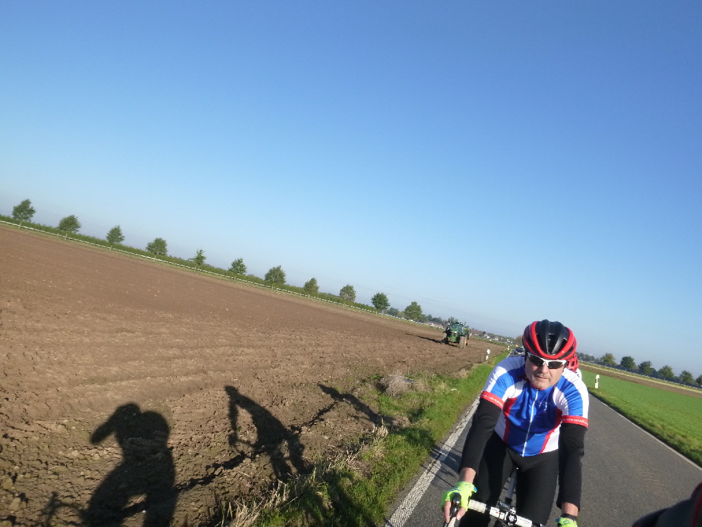 Geplant war eine schnelle Runde, aber schnell wurde klar: Das mit der schnellen Runde klappte nicht. Thomas hatte eine unbekannte Formschwäche. Wir trafen an der letzten Kontrolle noch einige bekannte Radsportler. Kai-Uwe hatte Geduld bis ins Ziel, dann fuhr er zügig nach Hause. Thomas ließ sich Zeit, der Nachmittag war regenerativ verplant.