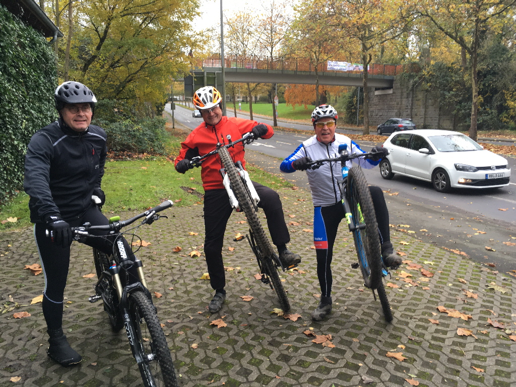 Trotz widersprüchlicher Wettervorhersagen waren wir samstags, wie sonntags unterwegs. Und es lohnte sich, denn bisweilen war sogar die Sonne dabei. Die Gelegenheit war günstig, die neue Bekleidung zu testen. Am Samstag folgte Thomas einer fiktiven Route durch den Duisburger Wald Richtung Ratingen, mit kurzer Rast an der Auermühle und dann der Rückweg vorbei am Golfplatz und auf der Trasse heimwärts nach Kettwig. Im Ruhrtal-Casino war Kuchenpause angesagt und wir durften weihnachtliche Deko genießen. Am Sonntag um 10 Uhr waren wir ….zu zweit.... und drehten eine gemütliche Runde um den Baldeney-See. Auch heute, zwar kühl aber durchaus auch sonnig war es wert ein paar Kilometer auf dem Rad zu absolvieren. Am Haus Scheppen gab es Kaffee und ein kleiner Klön mit Christian passte ins Programm. |