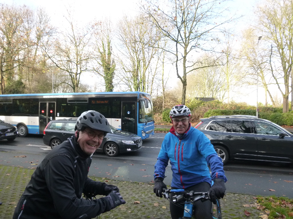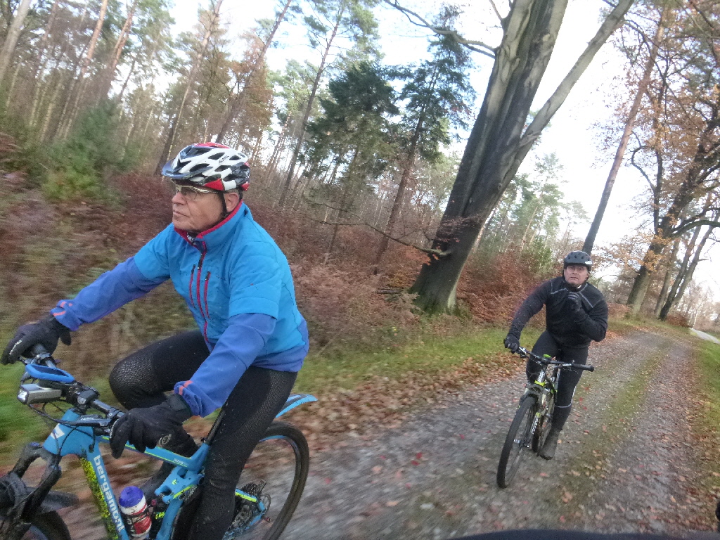 Wieder in kleiner 3-er-Besetzung stand eine kleine Erholungsrunde für Atemwege und Kreislauf auf dem Plan. Anfangs hatte Thomas das etwas falsch verstanden und suchte alle matschigen Hügel in erreichbarer Nähe. Dabei fielen ihm die Bergaufpassagen ganz schön schwer. Immerhin gelang es den kleinen Mangel bergab zu kompensieren. Richtung Ratingen wurde es dann ruhiger und bekömmlicher für meine etwas angeschlagenen Bronchen. Am Ratinger Bahnübergang verweigerte der telefonisch erreichbare Schrankenwärter die Durchfahrt , also ging es über den Radweg nach Lintorf und dann wieder Richtung Duisburger Wald. Da alle ein wenig knapp mit der Zeit waren, fiel die Kaffeepause aus - auch weil uns das Büdchen am Entenfang nicht so zusagt. Mit knapp 40 km war es trotzdem eine schöne Herbstrunde. |