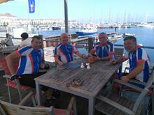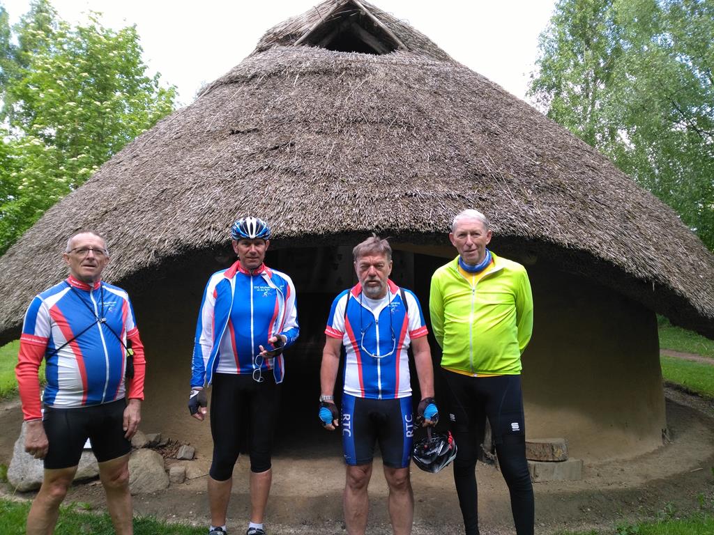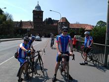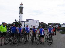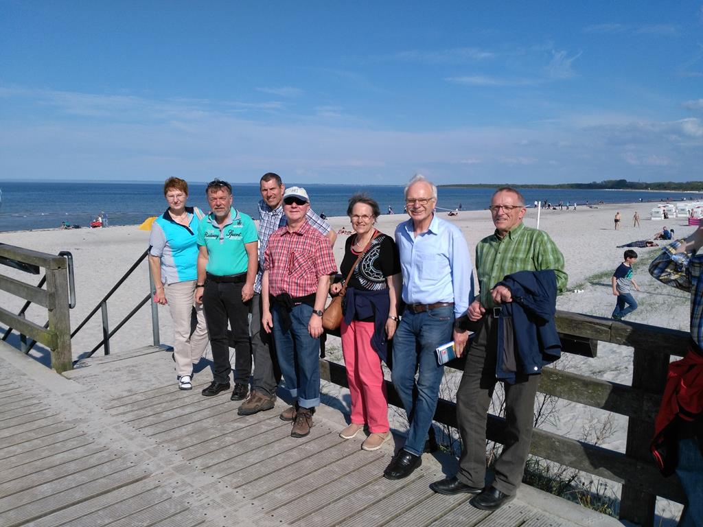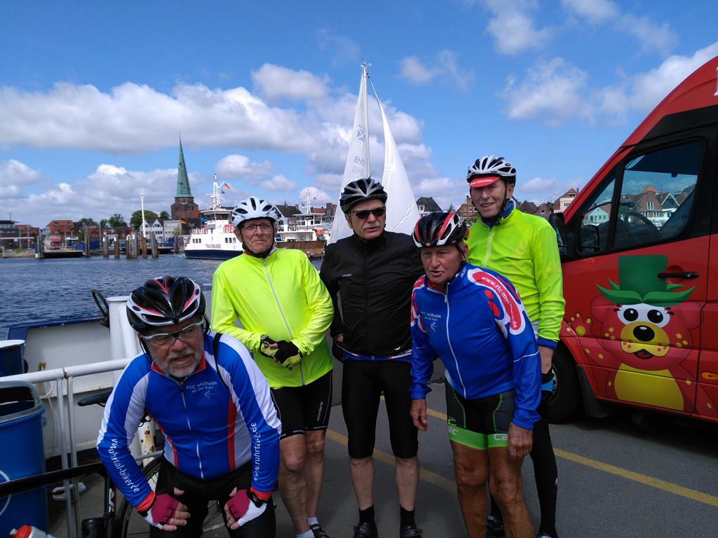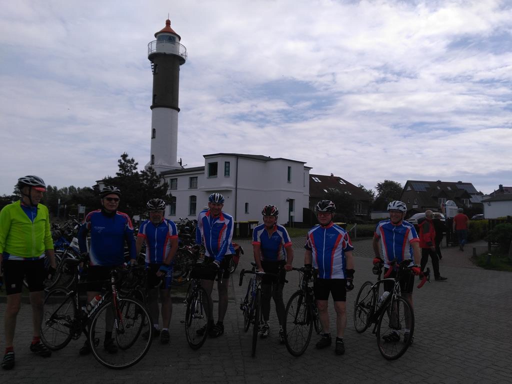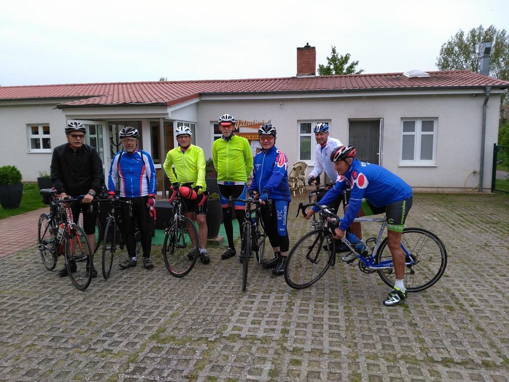 Unser Tourenplaner Klaus Dieter Taute hat sich reizvolle Strecken durch die Landschaft Nordwestmecklenburgs mit seinen leuchtendgelben Rapsfeldern einfallen lassen. Er führte die Gruppe mit seinem Garmin immer sicher zu den abwechslungsreichen Zielen. Am Montag war Travemünde mit dem ehemaligen Schulsegelschiff Passat und dem kleinen Hafen angesagt. Auf dem Weg dorthin fand eine Kurzbesichtigung von Schloss Bothmer statt. Nach Travemünde wurde mit der Fähre übergesetzt. Ein Highlight war die Rückfahrt auf dem welligen Ostseeradweg an der Steilküste nach Boltenhagen. Am Dienstag fuhren alle im Dauerregen zum Kloster Rehna. Da alle pitschenass waren, fiel die Besichtigung aus und nach einer kurzen Rast wurde die Rückfahrt nach Boltenhagen angetreten. Am Mittwoch war die Hafenstadt Wismar und die Insel Poel auf dem Programm. Im Wismarer Hafen war die Gelegenheit, frische Matjesbrötchen direkt vom Fischkutter zu erstehen. Vom Timmendorfer Strand auf der Insel Poel hatten alle einen perfekten Blick auf Boltenhagen. Auch die Inselkirche in Kirchdorf aus dem 13. Jahrhundert konnte bewundert werden. Donnerstag führte uns Klaus-Dieter auf Wunsch einiger Etappenfahrer nach Lübeck zum Niederegger Marzipan. In der mittelalterlichen Altstadt kam man am Rathaus, Alten Markt und natürlich am Holstentor vorbei. Punker der Umgebung hatten das Holstentor in Beschlag genommen. Freitag ging es am Ostseestrand Richtung Wismar und dann südlich zum Dambecker See. Die verträumten Orte durch die man kam, boten nirgends eine Einkehrmöglichkeit und so wurde in Bobitz eine Imbissbude und Eisdiele angesteuert. Samstags wurde eine gemütliche Schlussrunde rund um die ruhige Kreisstadt Grevesmühlen gefahren. Auf dieser Runde wurde das Steinzeitdorf Kussow mit seinem Museum besichtigt, und die Gelegenheit zum Bogenschießen und Speerwerfen wahrgenommen. Sämtliche Rennradtouren gingen immer durch überaus welliges Geländer, so dass jeden Tag mehrere hundert Höhenmeter gefahren wurden. Gefürchtet waren die Kopfsteinpflasterpassagen in den zahlreichen kleinen Orten. Glücklicherweise hatte man auf den Touren nur geringen Wind. Teilweise standen sogar die Windräder des Mecklenburger Küstenlandes still. Nur ein Platten am Vorderrad und ein störungsanfälliger Tacho, der erst nach Wartung in zwei Radfahrgeschäften wieder flott gemacht wurde, störten das Weiterkommen. Die sieben Rennradfahrer kamen sportlich auf ihre Kosten und fuhren insgesamt auf den 6 Etappen runde 500 Kilometer und 2.600 Höhenmeter. 24 Stunden saßen die Teilnehmer im Sattel. Die fünf Begleiter ohne Rennrad erfreuten sich derweil an der wunderschönen Altstadt von Wismar , an den interessanten Ausstellungsräumen vom Schloss Bothmer und an den Strandkörben des Strandbads Boltenhagen. Am gemeinsamen Abschlussabend am Samstag blickten alle zufrieden auf eine harmonische und erlebnisreiche Woche zurück. MK