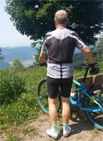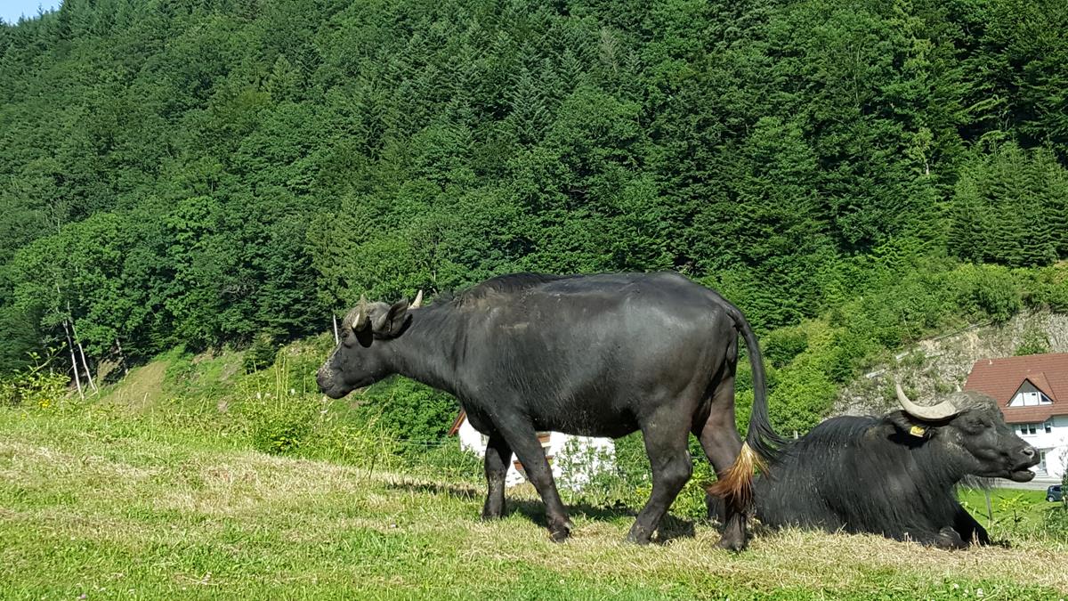 Vielleicht war es die vorerst letzte offizielle Etappenfahrt des RTC ins Traditionsziel Schwarzwald. 2002 fand die erste große Aktion mit dem Straßenrad im Ländle statt und die Zahl der Teilnehmer war mit 20 RadfahrerInnen beeindruckend. In der Folge fand jedes Jahr eine „Schwarzwaldrunde“ statt, der Schwerpunkt verlagerte sich aber zunehmend auf den Geländeritt. 2007 war die MTB-Gruppe 10 Teilnehmer stark und besetzte Huberts Bauernhof knapp zur Hälfte. 2017 waren wir nur noch zu Zweit. Quartier haben wir auf Huberts Bauernhof bezogen und da 2 Teilnehmer frei in der Entscheidung waren, reisten wir am Samstag an und verteilten Urlaub auf dem Bauernhof und Radsport auf eine ganze Woche. Der Griff in die 3. Juniwoche hat sich jedenfalls gelohnt, denn das Wetter war hochsommerlich heiß. Auf der flacheren Langetappe erreichten wir 37 °C in der Spitze und wir begrenzten die Etappenlänge auf rund 60 km. Im Brauhaus Waldkirch konnte mit Kellerbier und Griechischem Salat die Körpertemperatur normalisiert werden. Das Hauptprogramm bestand aus dem Aufstieg zum Hörnleberg. Freiamt auf der nördlichen Seite des Elztals, die Schwedenschanze oberhalb vom Bauerhof bildeten die „hohen“ Ziel in den bewaldeten Bereichen und eine 2. flachere Etappe Richtung Reute, Riegel und zurück über Emmendingen machte das Radprogramm komplett. Eine Shoppingsession per PKW und eine Reihe bäuerlicher Tätigkeiten bildeten das ergänzende Urlaubsprogramm. Gemeinsam mit Hubert brachten wir Heu ein und sorgten für die Versorgungsbasis von Eseln, Pferden und Ziegen. Kein Tropfen Regen und fast täglich Temperaturen über 30 °C waren durchaus anstrengend, aber auf dem Vitztiner Hof geht immerhin meist ein leichter Wind und auf dem Rad lässt es sich durchaus aushalten. Uns hat der Schwarzwald sicher nicht zum letzten Mal gesehen, wir freuen uns auf die nächste Runde. km