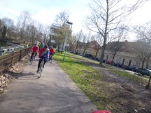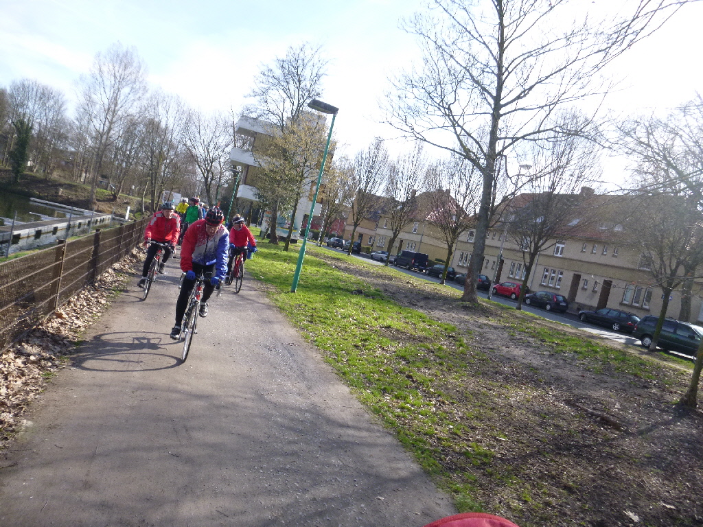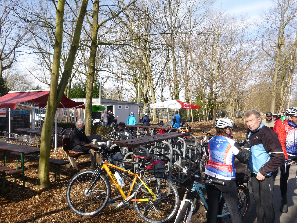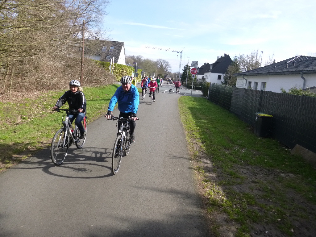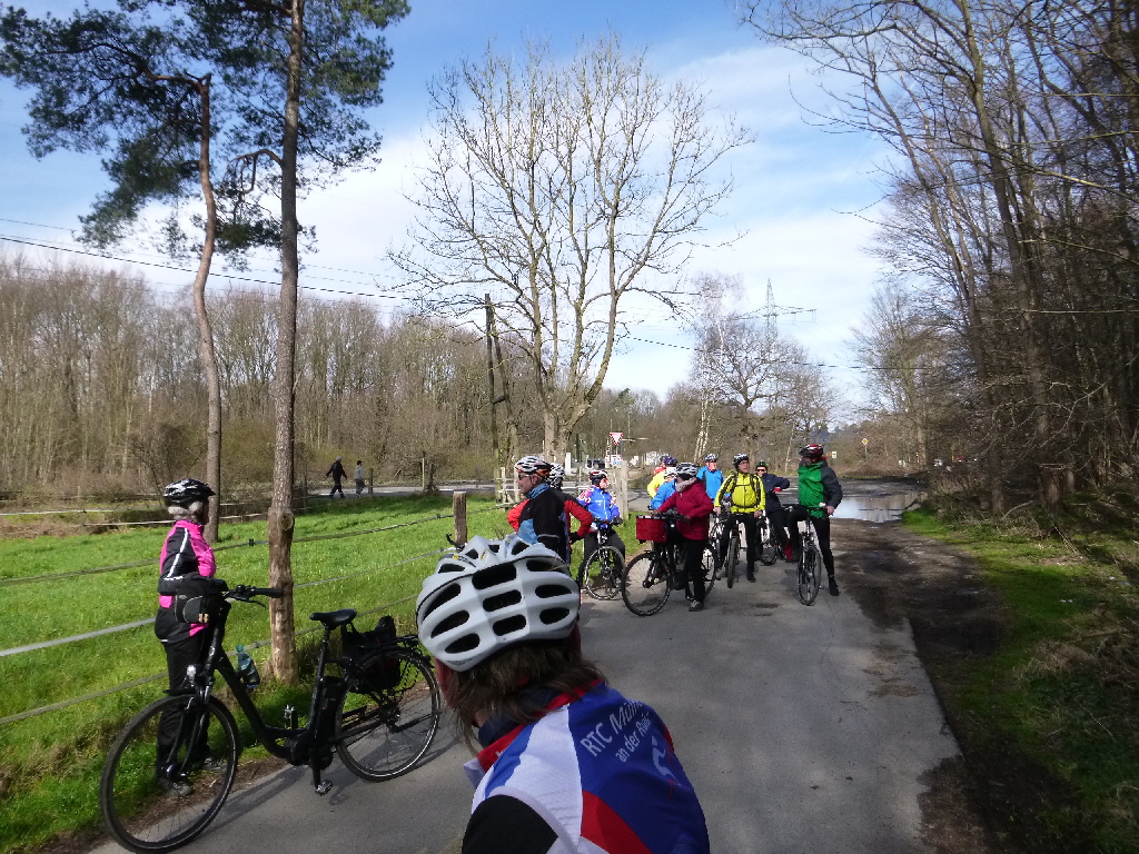 An der Mintarder Straße trafen sich 25 Gäste und Mitglieder des RTC Mülheim zum traditionellen Karfreitagsausflug. Das Wetter hatte jedenfalls recht viele Radler auf den Ausflug gelockt. Am Start servierte Marlies den ebenfalls traditionellen Kaffee und nach den Begrüßungsrunden startete Klaus-Dieter Taute und die Radler/Innen folgten in langer Lindwurmmanier.