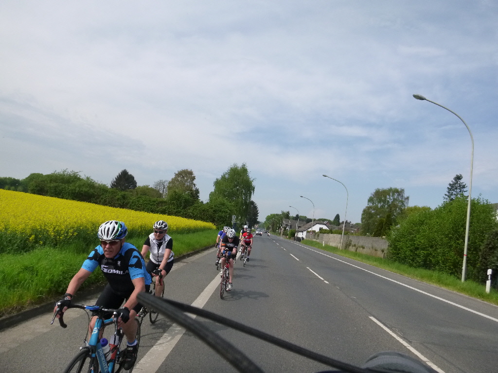 14 mehr oder weniger sonnige Mallorca-Tage bremsten unsere Mitteilungswut, aber jetzt sind alle wieder im Lande und wir tragen nach, wo und wie sich insbesondere Thomas‘ Laufräder in der Zwischenzeit gedreht haben. Am 14. April zur Sternfahrt nach D-Dorf: Acht RTC-ler mussten auf mich warten. Eine Scherbe hatte meinen Weg zum Treff gekreuzt und ich musste einen Platten bereinigen. Eigentlich lag ich gut in der Zeit und war flott unterwegs. Als ich den Schlauch wechselte kam Manfred vorbei und bot seine Hilfe an. Da ich fast fertig war, bat ich ihn die anderen am Treffpunkt um Geduld zu bitten. Er fuhr und ich montierte weiter. Einen Schlauch zu wechseln ist eine Grundkompetenz des Radfahrers. Als versierter Operateur kam ich nur 3 Minuten zu spät zum Treff. Wir warteten noch kurz auf weitere Nachzügler und fuhren um kurz vor 9:00 Uhr Richtung D-Dorf. Später zwang uns dann noch ein riesiger Nagel in Manfreds Hinterreifen zum Zwischenstopp. Nach der Reparatur ging es locker weiter. Das Wetter war angenehm und es wurde ziemlich warm. Nach der obligatorischen Kaffeepause beim Veranstalter ging es wieder zurück. Da der Start recht früh war, kamen wir auch wieder früh nach Hause. Immerhin standen dann 100 km und ein paar Höhenmeter auf der Uhr. Am 21. April Sternfahrt nach Tönisvorst: Heute waren es fünf RTC-ler, die sich an der Raffelbergbrücke trafen. An der A 40 Brücke in Duisburg über den Rhein sammelten wir noch drei weitere Mitstreiter ein. Es ging auf bekannten Wegen nach Tönisvorst. Die Leistungsbandbreite im Feld sorgte für Lücken in der Gruppe. Immer wieder entstanden große Löcher, die erst durch mühsam erzwungenes Warten geschlossen wurden. Auf dem Heimweg gingen sogar 2 Kollegen verloren und wurden nicht mehr gesehen. Tönisvorst bot kein Scan&Bike an und forderte dafür 5€ Startgeld. In Ordnung fanden wir das nicht und einige Kollegen machten ihrer Verärgerung Luft. Das Wetter war dafür aber 1a. TT Am 22. April mit Start in Duisburg: Verabredet war ich mit Klaus, der bei Duisburg 09 frühmorgens scan&bike unterstützte und um 9 Uhr wollten wir auf die Runde gehen. Auch Christian hatte sich angekündigt, hatte aber, wie sich später herausstellte, etwas mehr Zeit gebraucht. Um kurz nach 9 Uhr waren wir auf der Strecke, meist zu Dritt und kreuzten immer mal wieder die Bahnen einer Duisburger ASV Gruppe, die ein etwa gleiches Tempo vorlegte. Das warme Wetter und die frühlingshaften Aussichten auf der Strecke waren zum Genießen. Brigittes und Klaus‘ Räder, die erst am Abend zuvor aus den Flugkoffern ausgepackt worden waren, gewöhnten sich schnell wieder an die Rumpelstrecken, die aber weitgehend autoverkehrsfrei daher kamen. Wir beschränkten uns auf die 70er Runde und waren nach rund 3 Stunden wieder am OSC-Sportplatz. Die Duisburger waren mit rund 340 Teilnehmer im Soll, aber da 3 Veranstaltungen in NRW liefen, war der Ansturm trotz des Wetters nicht überwältigend.