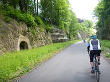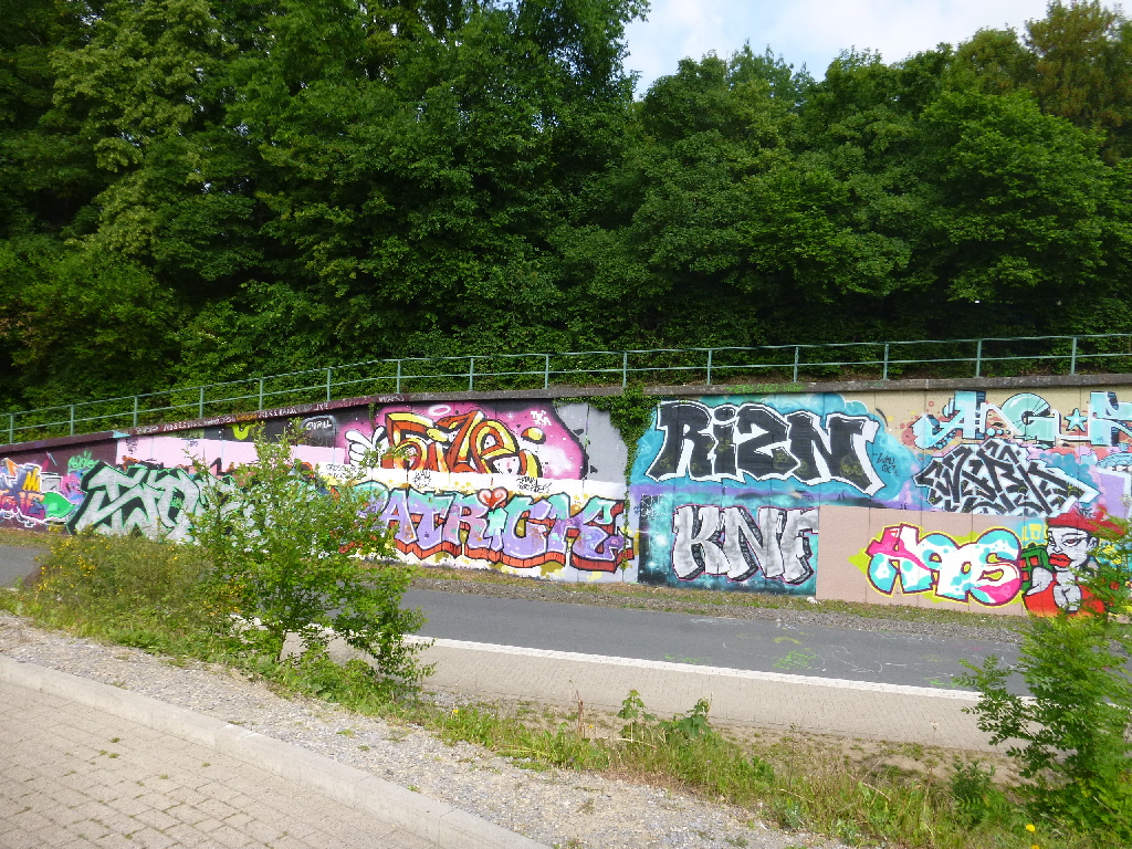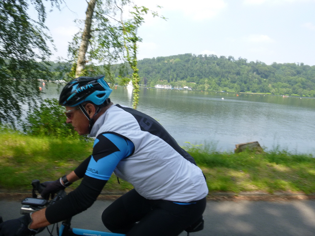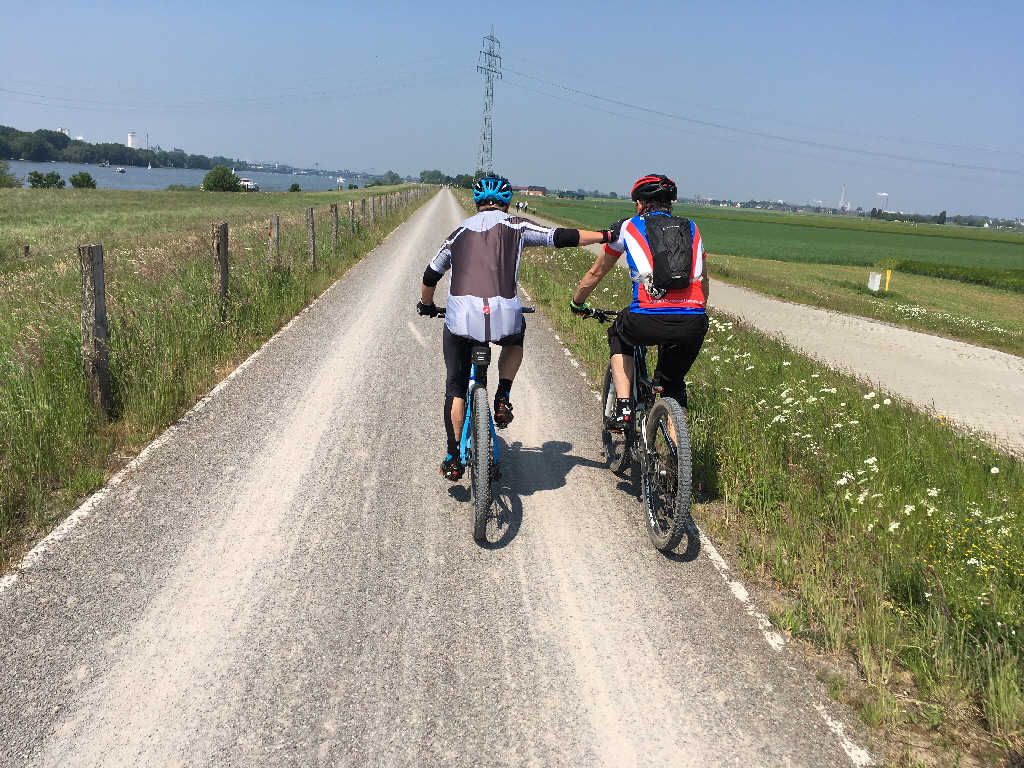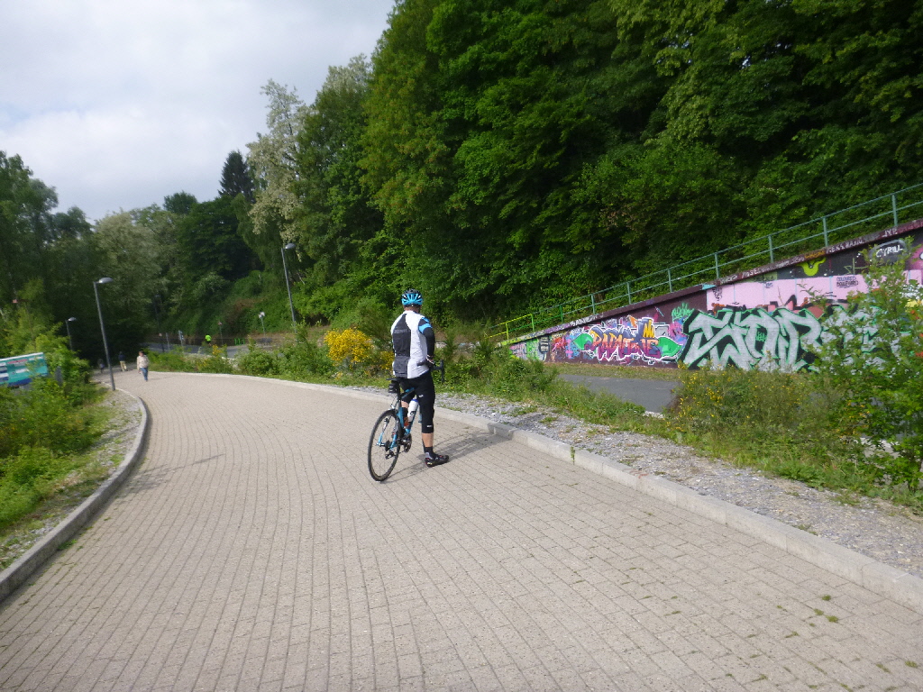 Am Samstag wurden die Musketiere in Wuppertal betreut und nachdem der scan&bike-Beginn mit telefonischer Unterstützung weitgehend erfolgreich war, starteten wir um 9 Uhr ab Gashaus ins Bergische. Thomas testete eine Trassenvariante ab Kettwig, mit kleinen Unterbrechungen und wenig samstäglichem Autoverkehr. Entlang des Weges führte der Track durch zahlreiche Tunnel mit interessanten Durchsichten, die wir mit den Batterieleuchten aufhellten. Nach rund 55 km war der Start/Zielpunkt erreicht. Durch die Streckenführung auf den Trassen hielten sich die Höhenmeter in Grenzen und auch die Pedelec-Batterie an Brigittes MTB war nicht überfordert. Vor Ort werteten wir die Anmeldeprobleme aus und trafen eine sorgfältige Kuchenauswahl. Das kühle aber doch schöne Wetter animierte zu einer längeren Pause und Thomas genoss zusätzlich eines der Bratwürstchen vom Grill. Der Weg zurück verlief durch den Schee-Tunnel, übers Wodantal und entlang des Baldeney-Sees. Wider Erwarten war die Strecke sogar ein wenig kürzer als der Hinweg und der Trubel am See hielt sich in Grenzen. Nach der Kaffeepause am Haus Scheppen ging es auf gewohnten Pfaden heimwärts. Die Pedelec-Batterie war nach 110 km bereit noch was drauf zu legen, leichte Sitzprobleme bei der Fahrerin waren aber auch zu verzeichnen. Am Sonntag hatte Kai-Uwe den Wunsch nach einer MTB-Runde geäußert, die wir dann auch um 10 Uhr unter die Räder nahmen. Eine Reise ins Sauerland hatten wir mangels besserer Planung verworfen und begaben uns auf eine kleine Kneipentour. Auf windungsreichen Schleichwegen steuerten wir das ASCHLÖKSKEN im Duisburger Süden an und trafen die Creme der älteren Radsportler des westlichen Ruhrgebiets. Der Treff am Rhein war rappelvoll. Getränke wurden reichlich geordert und die Kollegen am Grill produzierten Wurst und Fleisch am laufenden Band. Die Sonne verwöhnte zusätzlich und die Pause war üppig. Auf dem Heimweg kehrten wir dann noch im Schloss Heltorf ein, diesmal gab es Kaffee und Kuchen – also eine perfekte kulinarische Rundreise, die dem schönen Pfingstsonntag gut zu Gesicht stand. km |