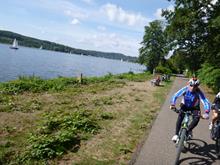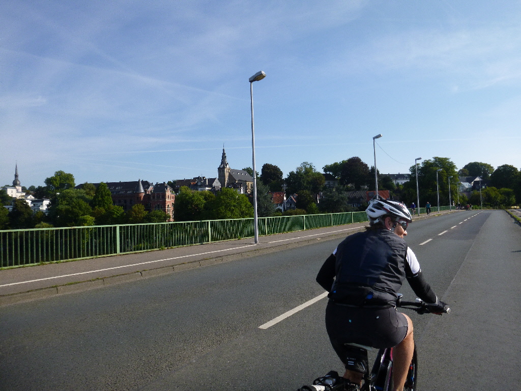 Bei allem Lob, den die Teilnehmer zurückbrachten, stand der Aufwand nicht im Verhältnis zum Ergebnis, zu den 60 Marathonis kamen 80 Mountainbiker und auf die RTF-Strecken begaben sich noch einmal so viele Radsportler. Verteilt auf die Einsatzzeit von morgens 5 Uhr bis abends 19 Uhr konnte fast jeder Teilnehmer sehr persönlich betreut werden. Wenn die Arbeit nicht fast vollständig ehrenamtlich abgewickelt würde, wäre auch kaufmännisch eine Katastrophe zu verzeichnen gewesen. Der Skiclub kümmerte sich liebevoll um seine Gäste, die Jüngsten, die Ältesten und sogar der größte Pechvogel wurden gewürdigt (mit schicken kleinen Pokalen) und ab und an kam so auch Leben in den großen Saal am Startort. Eine Gruppe belgischer Radsportler war angereist und feierte nach der Runde um die Talsperren in großer Runde. Das Rad hatte ich nicht mitgenommen nach Gevelsberg, weil ich von einem kleinen Unfall am Freitag noch etwas Erholung brauchte, so wurde der Tag lang. Am Sonntag war wieder Fahrrad-Tag. Wir hatten unseren Besuch auf der Krayer RTF angesagt und zogen per MTB längs der Ruhr zum RTF-Start. Der Besuch wurde begeistert aufgenommen und ein technisches Problem in der Anmeldung konnte bereinigt werden. Nach Kaffee und Schwätzchen drehten wir eine Seerunde und fuhren über die Wetterstation wieder heimwärts. RTF-Besuch ohne Punkte funktioniert auch ganz gut.