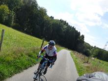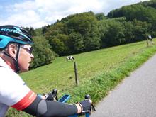 Im Vorjahr herrschte strömender Regen vor – 2018 waren die Vorzeichen deutlich besser und immerhin 54 Sportler gingen auf die schwere 200 km Runde. Mit Marathon, CTF und den RTF Standardstrecken war das Paket prall gefüllt, aber die Nachfrage hielt sich in Grenzen, auch wenn der Verein mit den rund 300 Teilnehmern zufrieden war. Gegen 10 Uhr hatte ich mich mit Thomas verabredet und wir hatten 70 km eingeplant. Bergab lief es gut, bergauf sammelten wir rund 900 Höhenmeter, die wir in gemäßigten Tempo erledigten. Die Landschaft rund um Lüttringhausen ist wunderschön und die Streckenwahl war weitgehend verkehrsarm, auch wenn bisweilen ein paar röhrende Straßenfeger unangenehm auffielen. Zwischen Wuppertal und Hückeswagen, vorbei an Herbringhauser-, Wuppertal- und Bevertalsperre geht es bergauf und -ab und viele Naturschönheiten sorgen für optische Abwechslung. Wir brauchten etwas mehr als 3 Stunden bis wir wieder am Ziel eintrafen. Wir können die Strecke empfehlen und haben sie genossen. km Am Sonntag fuhr Kai-Uwe den neuen deRosa spazieren. Gemeinsam mit Boris fuhren sie eine schnelle Runde. Sie hatten etwas mehr als zwei Stunden Zeit, und nutzten diese um über die Trasse den Sender zu erkunden. |