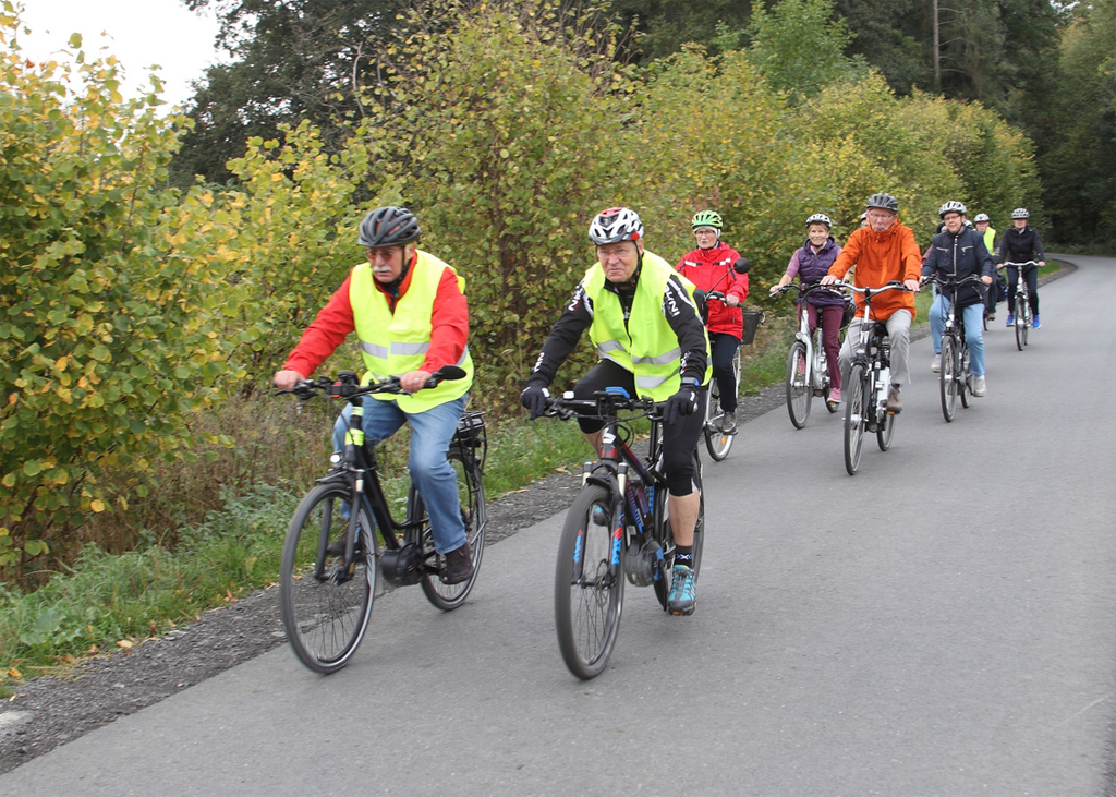 Auf Anfrage des Kreissportbundes Warendorf beim Radsportverband NRW bot der RSV Unterstützung in Fragen Pedelec-Training an. Im Frühjahr hatte der BDR einen Lehrgang aufgesetzt, der Vertreter aus den meisten Landesverbänden zum fit-for-e-bike Instruktor schulte. Einer dieser Vertreter war dann ICH und mit einer ganz guten Vorbereitung und Abstimmung mit den Warendorfern reiste ich am 22. September ins westfälische Warendorf. Geplant war eine 3-teilige Veranstaltung mit einem theoretischen Teil, den die vor Ort arbeitenden Polizisten übernahmen. Im 2. Teil waren praktische Übungen geplant und im 3. Part sollte eine gemeinsame Radrunde durch Warendorf absolviert werden. Die Kollegin der Polizei präsentierte Rechtslage und praktische Erfahrungen aus der Arbeit in Warendorf und Ahlen und kam mit den Teilnehmern schnell ins Gespräch. 17 Pedelec-Fahrer/Innen waren zusammengekommen und darunter waren in der Mehrzahl Damen. Die Herren sind offensichtlich beratungsresistenter. Ursprünglich war eine Doppelveranstaltung geplant, aber so viel Teilnehmer kamen nicht zusammen. Damit war der Zeitplan gelockert, es blieb Zeit für eine ausführliche Diskussion und wir konnten entspannt die Übungseinheiten durchführen. Mit Unterstützung der Radsportler der RSG Warendorf-Freckenhorst, dem Radsportverein vor Ort, erstellten wir einen interessanten Parcour auf dem gut geeigneten Schulhof. Die Damen und Herren in überwiegend gesetzteren Alter gingen mutig und zumeist auch geschickt auf die kleinen Übungsrunden. Es wurde gebremst, Hütchen im Slalom umkurvt und Hindernisse über- und umfahren. Alle Teilnehmer hatten sichtbar Spaß und nur selten wurde eine Aufgabe aus Sicherheitsgründen ausgelassen. Zum Ende wurde „Gruppenfahren“ geübt, damit auch der folgende Ausflug sicher und erfolgreich angegangen werden konnte. Halbwegs diszipliniert in einer 2-er Reihe zu fahren war nicht einfach durchzusetzen und klappte eher in Ansätzen. Dafür war die Runde, die die Kollegen der RSG ausgewählt hatten touristisch interessant und wir erhielten einen Eindruck vom hübschen Pferdestädtchen Warendorf. Die Gruppe löste sich auf dem kleinen Ausflug Schritt für Schritt auf, weil die Teilnehmer nach heimwärts abbogen. Die Resonanz war durchweg positiv und die Mischung aus Unterhaltung und sportlichem Anspruch kam gut an. Eine Wiederholung ist im Plan. km