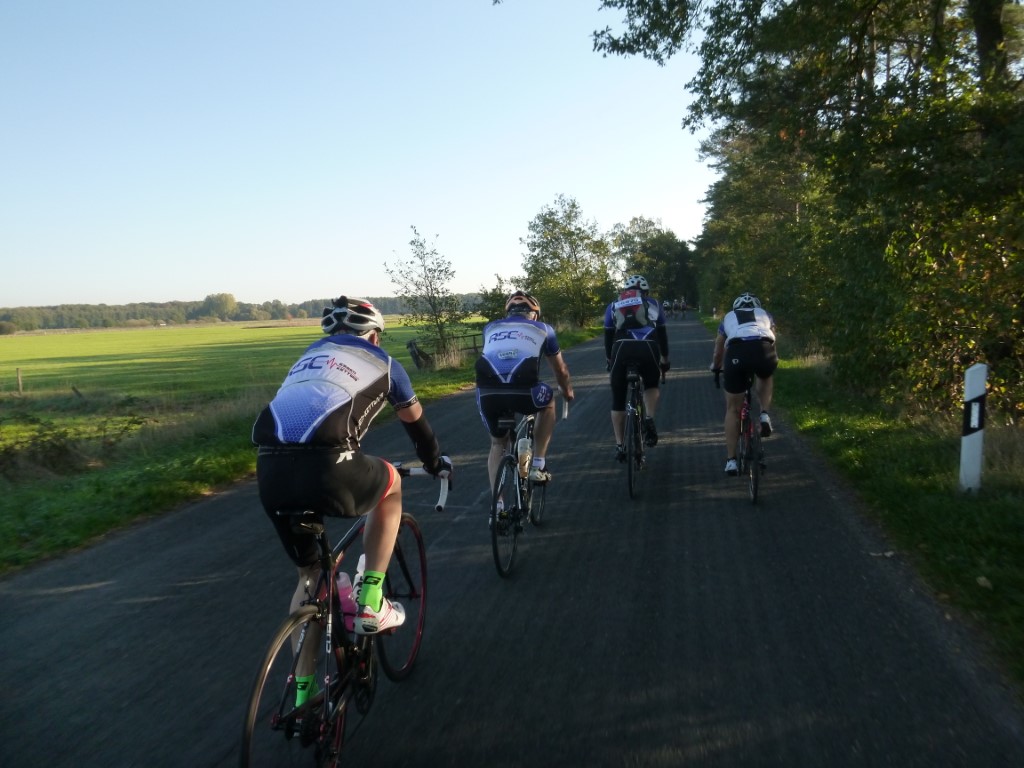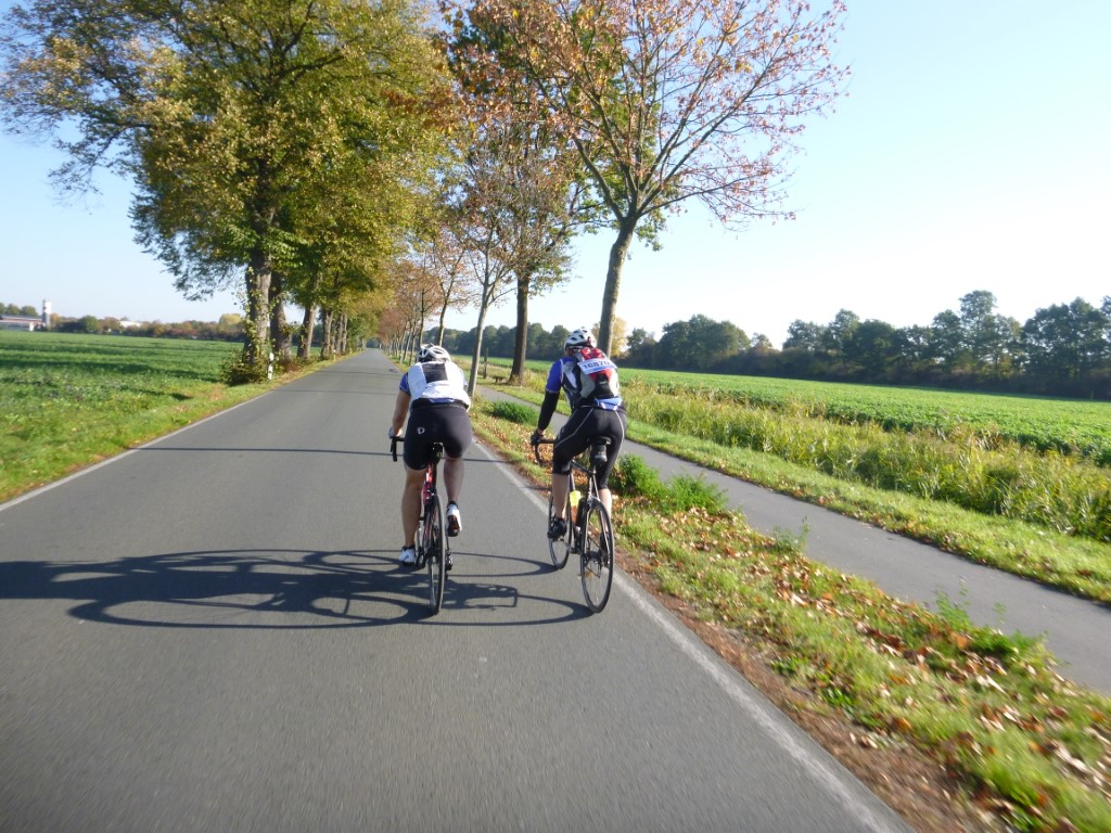 Als Neumitglied im RSC war es für Thomas die erste Fahrt mit dem Kettwiger Verein. Der Treffpunkt war in Haltern um 8:30 Uhr auf dem Schulhof der Schule an der Holtwiker Straße. Es ging dann auch pünktlich los. Zu siebt wurde die 70-er Runde unter die Räder genommen. Das Tempo war moderat und es blieb Zeit sich zu unterhalten und die wunderbare Herbstlandschaft zu genießen. Wieder zurück in Haltern gab es den versprochenen Kuchen. Auch andere RSC-ler fanden sich nach schneller langer Runde ein. Als der Kuchen verputzt war, ging es mit dem Auto nach Hause um das Restwochenende zu genießen. TT