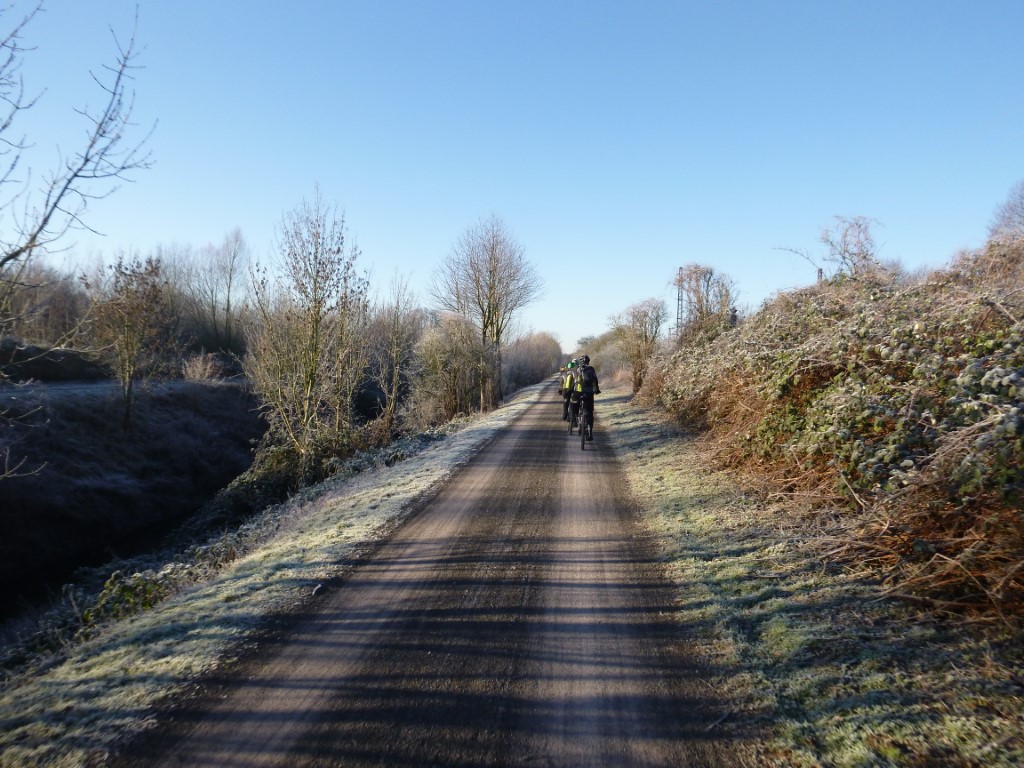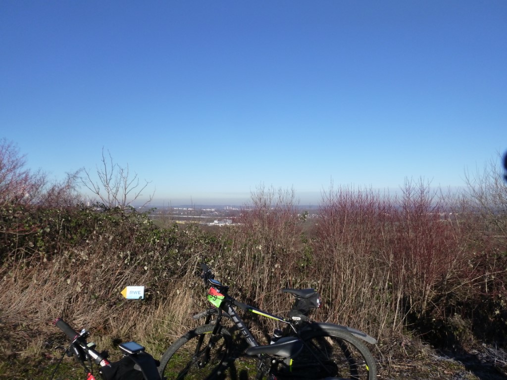 Am Morgen musste ich dann nicht ganz so früh aus den Federn, dank der guten Vorbereitung war das Auto schnell beladen und nach kleinem Frühstück musste ich nur noch die Seitenscheiben vom Eis befreien. Unter Vermeidung der A3 setzte ich mich Richtung Dortmund in Bewegung. Kurz hinter Bochum kontrollierte ich im Kopf nochmal meine Reiseutensilien und mich beschlich das ungute Gefühl doch nicht alles eingeladen zu haben. Irgendwie konnte ich mich nicht erinnern, das Vorderrad verstaut zu haben, es braucht immer eine gewisse Sorgfalt um das Vorderrad sicher und fest abzulegen. Der Kontrollblick nach hinten bestätigte meinen Verdacht. Ohne Vorderrad war die Aktion zum Scheitern verurteilt, als Wheely 50 km durch den Wald zu fahren war aussichtslos, es blieb nur die Umkehr. Auf der A40 stand der Verkehr auf der Rückfahrt hinter Essen. Nach 15 Minuten Verzögerung verließ ich die Bahn ab Holsterhausen und wurstelte mich etwas mühsam heimwärts. Angesichts des Bilderbuchwetters ärgerte ich mich, vervollständigte zu Hause dann aber das Rad und entschied mich für eine Privatrunde Richtung Rhein, um noch möglichst viel Sonne einzufangen. Trotz des Ärgers fuhr es sich sehr angenehm. Die ersten 2 km waren für die Nase mit eiskalten Nadelstichen noch unangenehm, aber nach der Gewöhnung ließ es sich wunderbar fahren. Ganz allein war ich selten, zahllose Hundemeuten mit Menschenbegleitung und ein Biker, der in einer eisigen Kurve verunglückt war, sorgten für Abwechslung. Wenn sich das Wetter hält, ist das Debüt auf der WWBT nun auf Waltrop verschoben. (km)