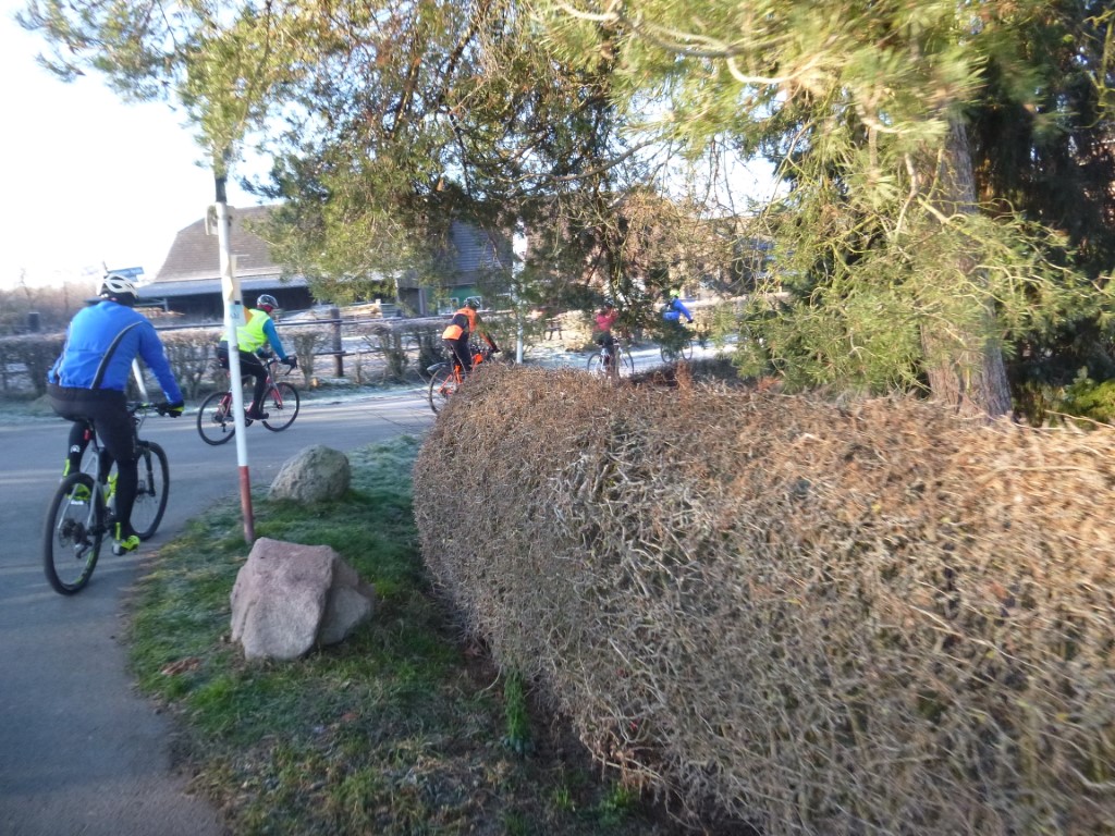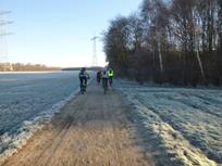 Nach der Anmeldung sammelten sich die RSC-ler am Startbogen und ließen sich die Kontrollkarte stempeln. Insgesamt 808 Teilnehmer taten es ihnen gleich. 7 RSC-Kollegen waren am Start und die große (53km) oder auch die ganz große (75km) Runde sollte angegangen werden. Zu Beginn gab es Probleme mit vereister Schaltung und einigen Fotostopps, da blieb die Gruppe nicht gut zusammen. Aber kein Problem, denn an der ersten Kontrolle waren alle wieder beisammen. Die Gruppe, die die ganz große Runde fahren wollte, ließ Thomas ziehen. Die Form war noch nicht so gut. Er fuhr gemütlich los, der Körper verlangte Bewegung, schon der Kälte wegen. Er ließ es locker angehen und machte noch ein paar Fotopausen. Die Strecke bot Asphalt, viele Wald- und Feldwege sogar ein paar Trails. Diesmal gab es auch ein paar Höhenmeter, 392 Hm genau. Im Ziel trafen sich dann alle wieder und auch noch andere des RSC. Nach dem kleinen Imbiss vor der Abreise ging es dann ab, Richtung Heimat. |