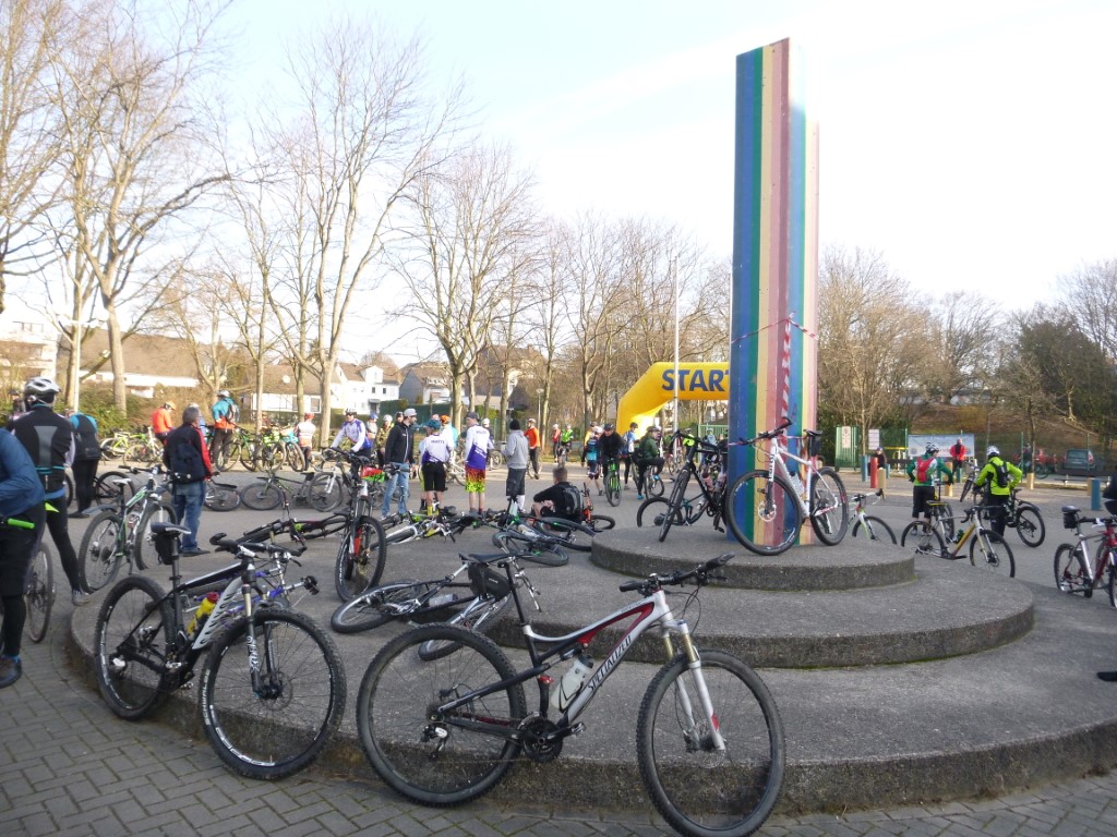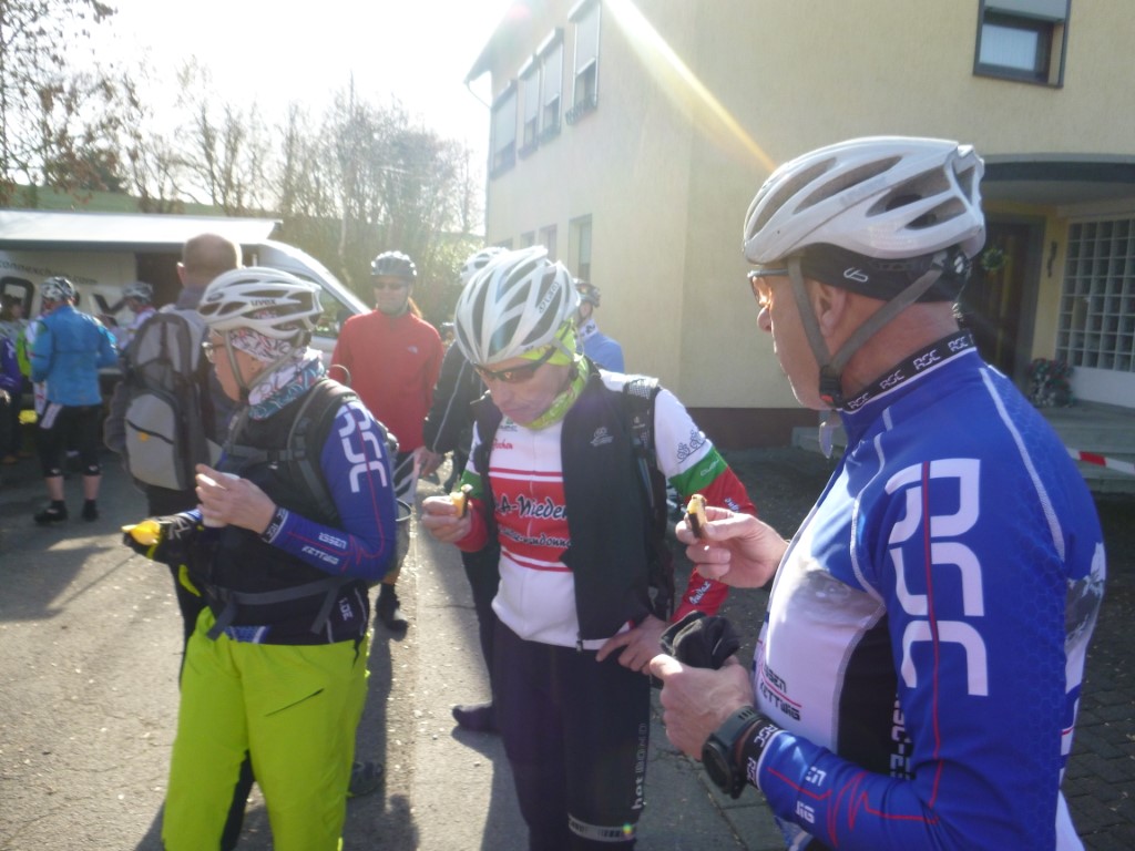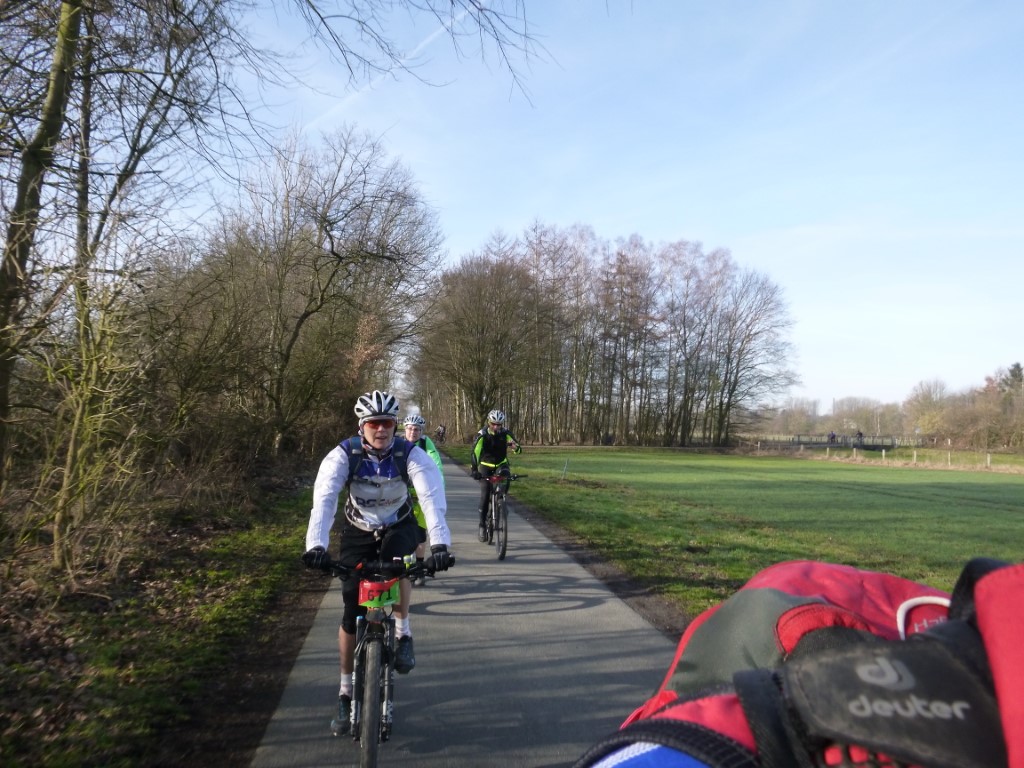 Am Sonntag zogen wir in Mülheim zu Dritt eine Runde in Richtung Rhein und nur Thomas war in Richtung Dortmund unterwegs. Das Wetter war Spitze und die Anreise recht kurz. 8 RSC-ler waren am Start. Barbara und Alex hatten heute großes vor und zogen nach Erhalt des Startstempels ordentlich am Lenker und drückten kräftig auf das Pedal. Bärbel hatte es auch eilig und war dann (für mich) nicht mehr gesehen. Der Rest ging auf eine kombinierte Runde, es sollte eine Genussrunde werden. Jochen hatte vom letzten Brevet eine leichte Erkältung mitgebracht. So rollten wir locker los und erfreuten uns am schönen Wetter. Der Anfang war noch recht asphaltlastig. Danach ging es dann über Wirtschafts- und Waldwege hinunter zur Ruhr. Das tolle Wetter hatte auch trockene Wege zur Folge und nur ab und an kreuzten wir eine große Restpfütze. Heute waren auch wieder die Kollegen unterwegs, die in der letzten Woche pausiert hatten. An den Kontrollen war viel Betrieb auf der Strecke herrschte reges Treiben. Nach 48 km und 730 Hm gab es im Ziel eine Bratwurst vom Grill. Die schmeckte bei Sonnenschein besonders gut. Das Rad musste zu Hause auch nicht aufwändig gereinigt werden, so macht Radfahren Spaß. TT