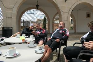 Die Kilometerleistung war demzufolge nicht sehr beeindruckend. Wie im Vorjahr hatten wir uns den Dümptener Radsportkollegen angeschlossen. Gerd hatte wieder das Sentido-Hotel reserviert, das uns jeweils freundlich, mit gutem Service und guter und variabler Küche umsorgte. Überschattet wurde die Veranstaltung durch den tragischen Tod von Heinz Sprenger, der in einer Pause an der Ermita de Betlem bei Arta vom Rad stieg und sich auf eine Bank setzte. Er fiel von der Bank, verlor das Bewusstsein und alle Versuche der Wiederbelebung scheiterten. Völlig unerwartet und mit 66 Jahren viel zu früh ist Heinz Sprenger aus dem Leben geschieden. Der Verlust ist riesengroß, natürlich für seine Familie, aber auch für die Radgruppe und für Mülheim, denn Heinz war ein engagierter Protagonist gegen Kindesmisshandlung und –missbrauch. Als „echter Schimanski“ hat er sich auch in seiner aktiven Zeit als Kommissar einen Namen gemacht. Der Schock in der Gruppe war groß, Entsetzen und eine gewisse Sprachlosigkeit überschattete die sportlichen Aktivitäten, aber es wäre nicht im Sinne des sportlichen, wie sozialen Aktivisten gewesen in der Schockstarre zu verharren. Behutsam kehrte der sportliche Alltag wieder ein und die Ausritte auf der Insel brachten Entspannung in die angespannte Situation. Das Wetter tat ein Übriges, die Aktivitäten zurückhaltend zu gestalten. In den Pausengesprächen wurde Heinz immer wieder zum Thema, geprägt von Respekt, Bedauern und Trauer um den Verlust, die auch diejenigen erfasste, die ihn nur wenig gekannt hatten. In den mehr als 30 Jahren in denen wir Mallorca im Frühjahr zum Urlaubs- und Trainingsziel gemacht haben, war diese Jahr das wohl denkwürdigste. Es war trotzdem eine schöne Zeit, die die beteiligten Menschen einander näher brachte und in der Auseinandersetzung mit dem tragischen Ereignis, dennoch eine positives Gefühl entstehen ließ. Inzwischen hat uns der profane Alltag wieder, aber die Gedanken wandern immer noch häufig zurück. km |