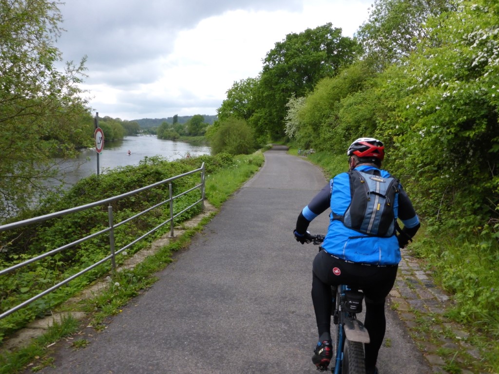 Punkte stehen nicht auf dem Programm, aber ein paar Kilometer auf dem Rad sind nötig um die Laune hoch zu halten. Thomas und ich haben Sonntag das MTB ausgepackt und bleiben im Flachen. Die Runde um den See und am Ende über Kupferdreh nach Nierenhof führt uns zum Cycle-Café. Der Cappuccino ist lecker und Thomas gibt seine Geburtstagsrunde aus. Im Cycle-Café stehen hochwertige und interessante Räder, allerdings auch zu edlen Preisen. Der Rückweg stimmt weitgehend mit dem Hinweg überein, wir sind recht zügig unterwegs und haben halbwegs trockenes, aber kühles Wetter. Am 1. Mai sind am Treffpunkt Thomas, René, Kai und Klaus versammelt. Kai und René sind per MTB da, wir haben das Straßenrad genommen, Also geht es für uns zuerst auf die Fahrt in den Mai per Straßenrad und wieder in Richtung Cycle-Café. Die Sicht ist schlecht und der Nebel hält sich wacker und die Sonne will sich nicht sehen lassen. Der Kaffee am Haus Scheppen ist weit weniger lecker als im Cycle-Café, auch wenn er etwas günstiger ist. Egal, im Nebel ist die Pause erholsam und auf dem Baldeney-See tummeln sich die Segelboote und suchen nach einer Prise Wind. Die beiden Mountainbiker tummelten sich am Schloß Landsberg und testeten Nebenwege (siehe Fotos unten). km |