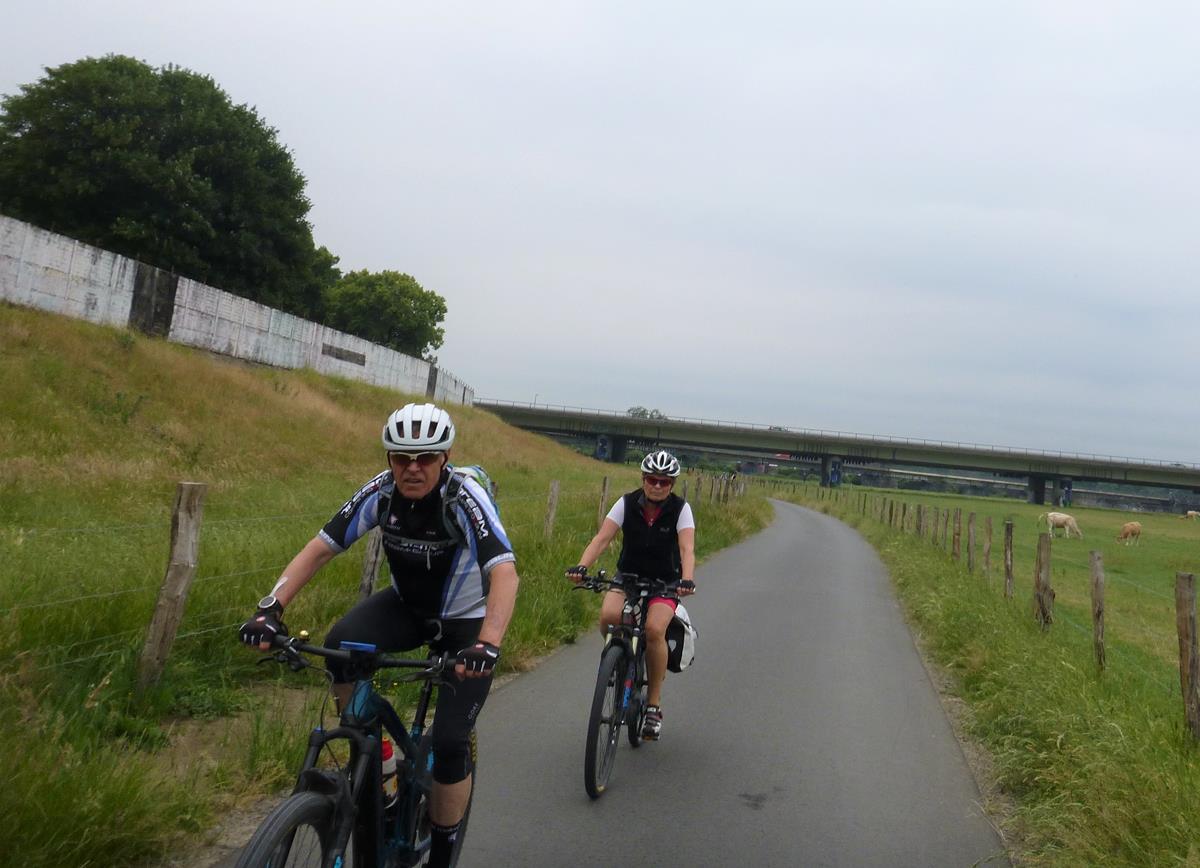 Ewald, Hoheward und Hoppenbruch sind für Thomas und mich so eine Art Anziehungspunkt in Coronazeiten geworden. Eigentlich waren wir mit Uwe R. verabredet, der sich hier besonders gut auskennt und das Ziel war die Erkundung der Umgebung für einen Gruppenausflug mit den Teilnehmern einer Veranstaltung Anfang Juli. Uwe kam nicht, wie sich später herausstellte lag er beim Zahnarzt unter dem Messer. Nach angemessener Wartezeit entschlossen wir uns zu einem Ritt über die Halde entlang des ausgeschilderten Trails und nachdem wir wieder bei Ewald gelandet waren versuchten wir uns an einer eigenständigen Erkundung. Den Ewaldsee wählten wir als erstes Ziel. Das ist ein künstliches Gewässer. Der Aushub wurde als Material für den Bau der A2 genutzt und diente dann dem Bergbau als Wasserreservoir. Heute ist er Teil des grünen Biotops, das nach dem Ende des Bergbaus in dieser Region entstanden ist. Auch jetzt wird munter an der Renaturierung zwischen Halden, Emscher und Rhein-Herne-Kanal gearbeitet. Für die Streckenwahl machte uns das ein paar Probleme, aber Umleitungen gehören zum Pfadfinder 1x1. Wir nahmen uns Zeche Nordstern als 2. Zwischenziel vor. Durchs Biotop erreichten wir den Kanal, kreuzten den Kanal über die futuristische Brücke und drehten eine Besichtigungsrunde um den Nordsternpark. Den Nordsternturm mit dem „Herkules von Gelsenkirchen“ betrachteten wir aus der Ferne, ein Besuch mit Fernsicht ist aber möglich. Nach der Nordsternrunde kreuzten wir wieder den Kanal und fuhren auf dem rechten Radweg wieder Richtung Hoheward. Irgendwann geht es dann wieder links, bzw. nördlich und der Einstieg zur Halde Hoppenbruch erschließt sich. Über einen kleinen ausgeschilderten Trail fanden wir den Weg nach Hoheward und hatten unsere Runde im Kasten. Ein bisschen Trail, etwas Industriekultur und wachsendes Biotop, das ist ein Stück neues Ruhrgebiet. Ach ja, am Sonntag waren wir dann zu Dritt und ohne Halde unterwegs. Haus Ripshorst – mit neuem Kaffeebüdchen – und ein paar Regentropfen gehörten zum Erholungsprogramm. km