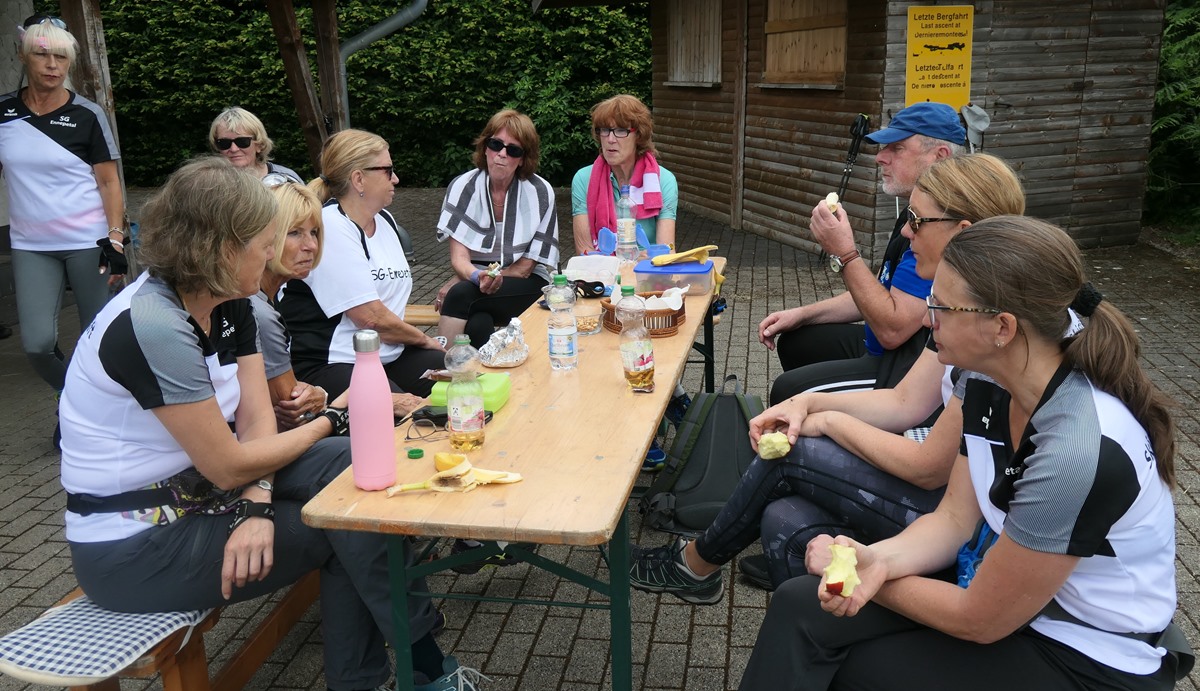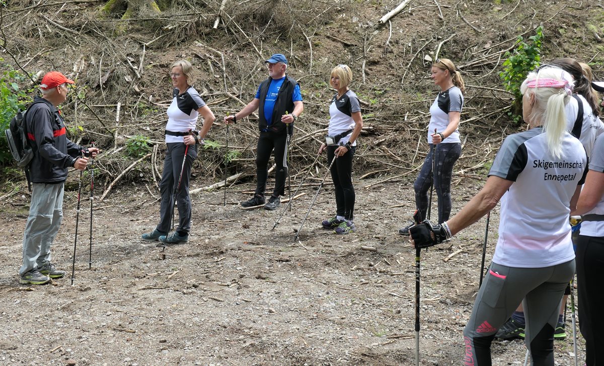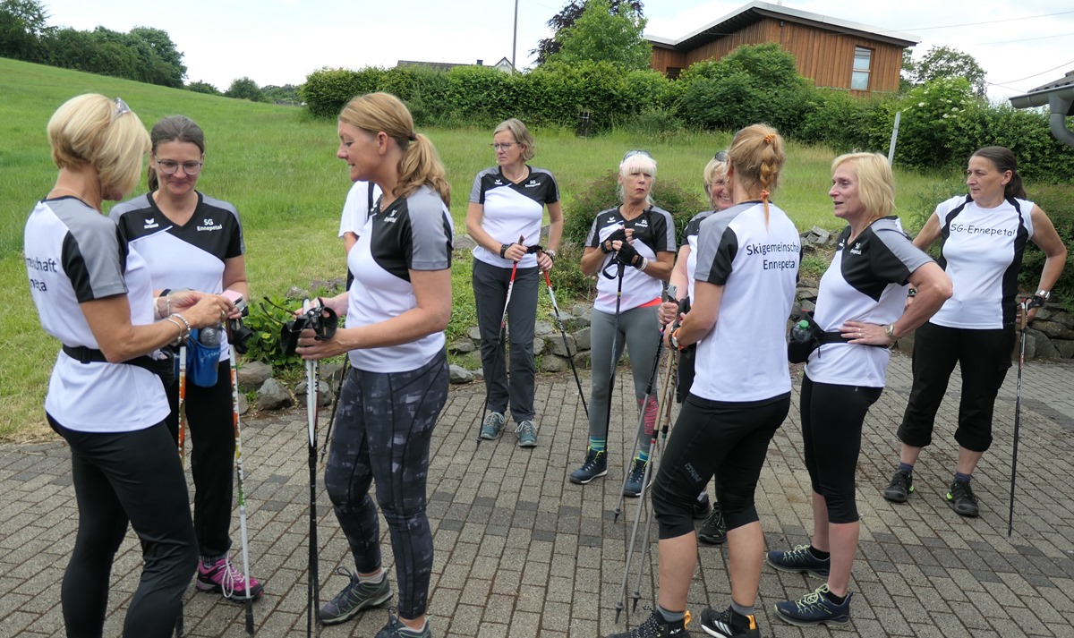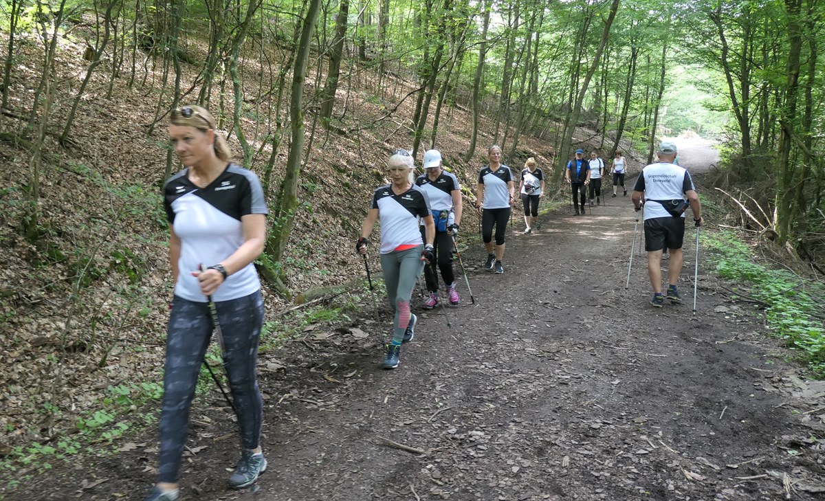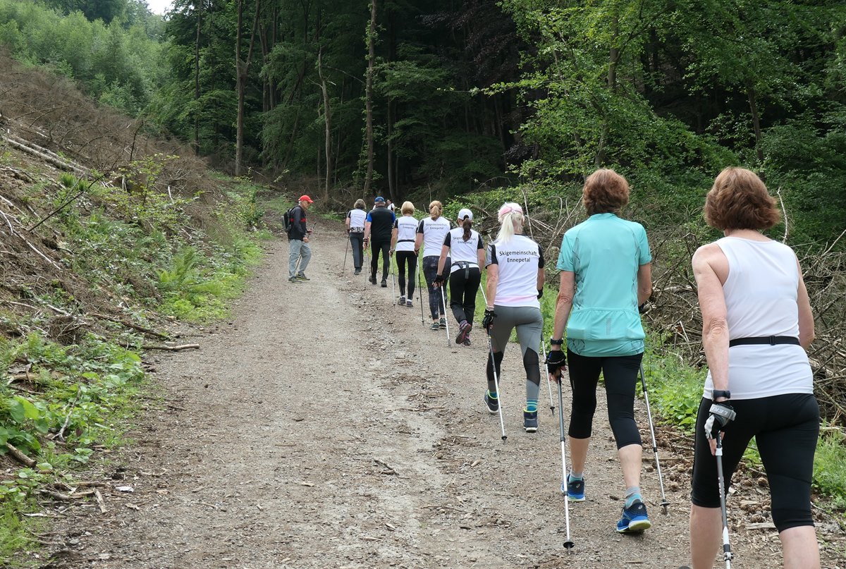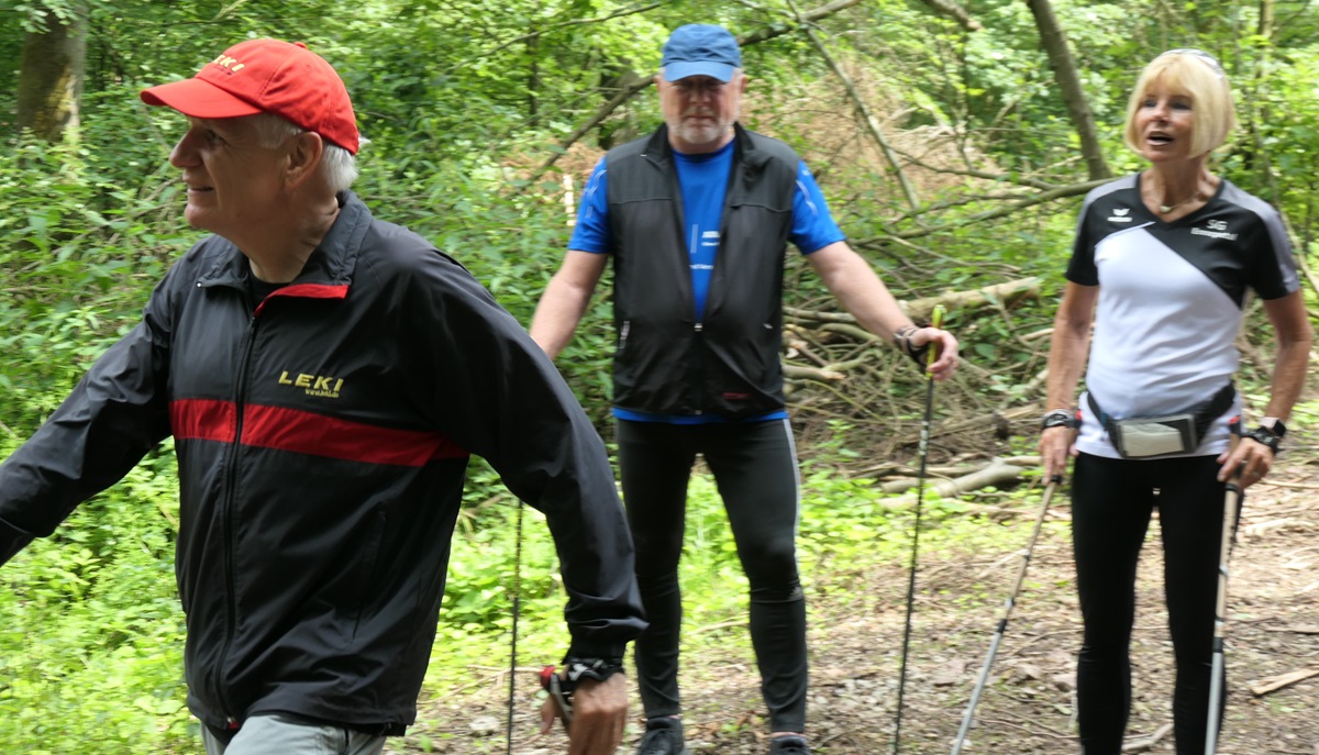 Unter der Woche wechseln wir, mal am Stock durch den Wald oder eben unterwegs mit dem Rad. Wobei wir inzwischen vieles mit dem Rad erledigen und nicht nur sportliche und touristische Ziele verfolgen. An diesem Samstag war es mal anders, wir fuhren mit dem Auto ins Bergische und waren Teilnehmer eines Nordic-Walking-Seminars. Im Bergischen betreiben viele Vereine Skihütten und so eine Hütte betreibt die Ski-Gemeinschaft Ennepetal. Schön und abgelegen, gut ausgestattet bot die Hütte alles was ein Seminar so braucht, sogar eine Wiese, die für Video-Aufnahmen von den Teilnehmern geeignet ist. Wolfram, der Trainer machte es gut. Nordic-Walking, in der Theorie eine dezente Bewegungssportart, die alle Muskelgruppen mobilisieren kann, wenn man es denn richtig macht. Wolfram demonstriert die Abläufe, ließ uns laufen und legte den Finger in die Wunde bei den Defiziten. Aber alles in angenehmer Art. Das Gelände ist toll, aber auch fordernd. Einige Höhenmeter kamen zusammen und wir lernten, dass Walking Stöcke auch im Steilhang von Nutzen sein können. Ein Seminar mit 18 Teilnehmern ist nach eineinhalb Jahren Pause zudem eine besondere Erfahrung. Schönes Wetter, besondere Landschaft und prima Gastgeber – was will man mehr. km