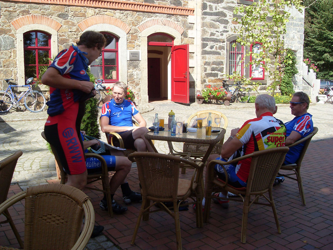 Der Donnerstag wurde der Tag der Königsetappe. Unser Weg führte uns Richtung Tschechien über stets welliges Terrain, der höchste Punkt der Tour lag bei knapp 600 m – eine kleine Tschechische Hütte bot uns Unterschlupf. Getränke und deftige Gulasch- und Wurstportionen wurde zum Spottpreis angeboten. In Oybin, einem idyllischen Städtchen am Rande der Zittauer Berge war die zweite Rast angesagt – Kaffee und Kuchen mundeten vorzüglich, wobei der Bogen, den wir bis Bautzen noch ziehen mussten recht lang wurde – auch wenn wir den Besuch in Zittau auf eines der nächsten Jahre vertagten.