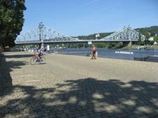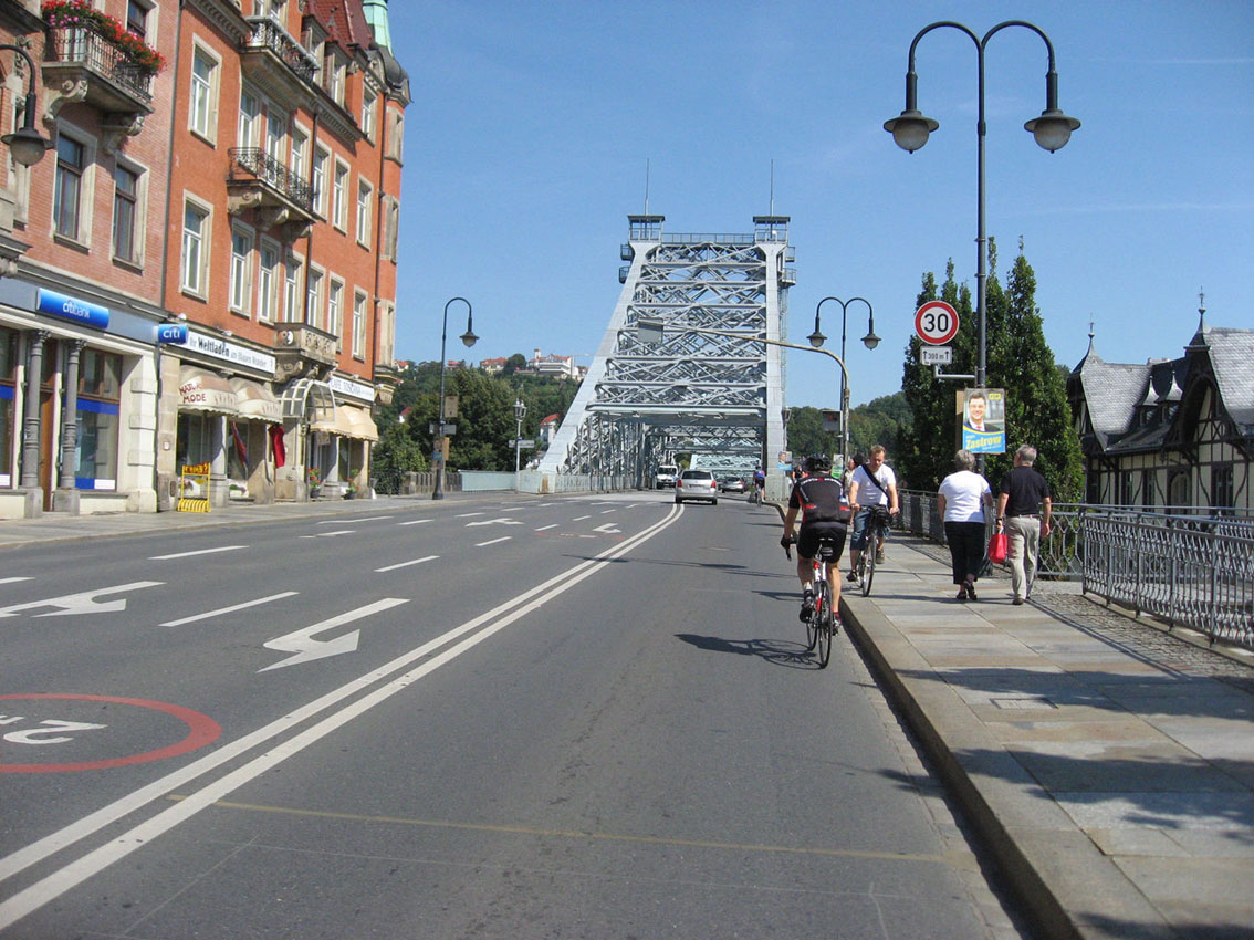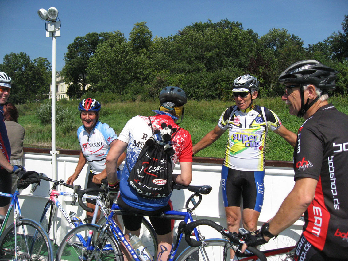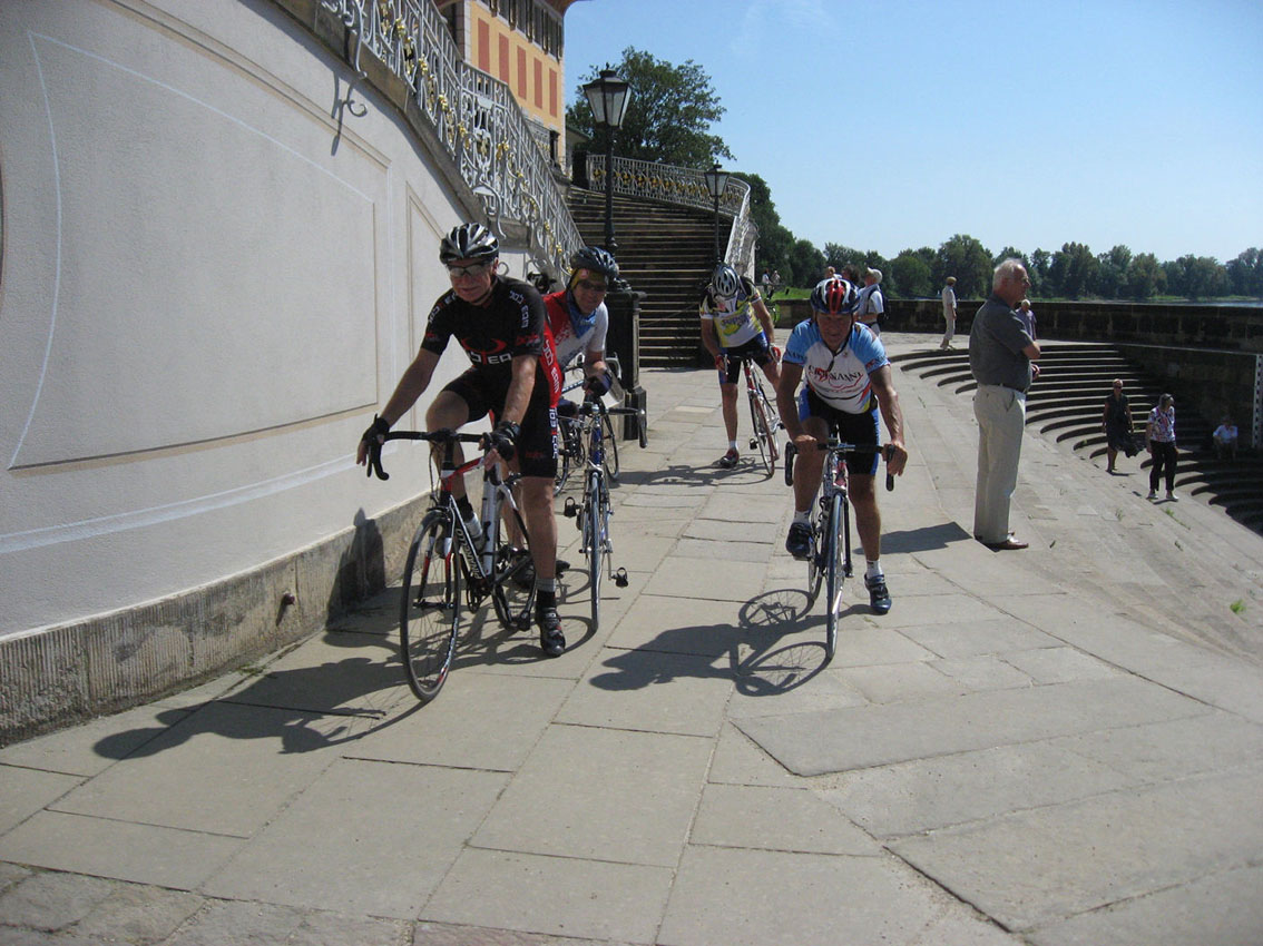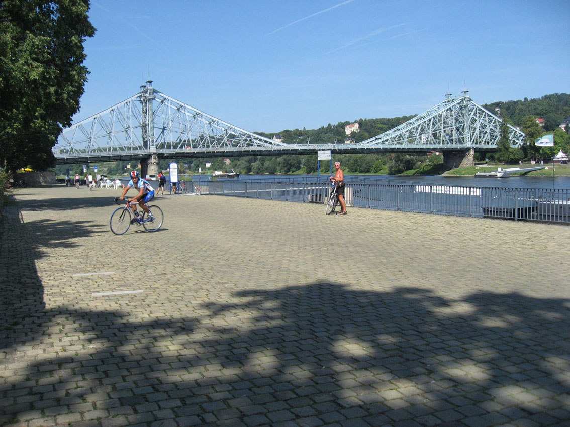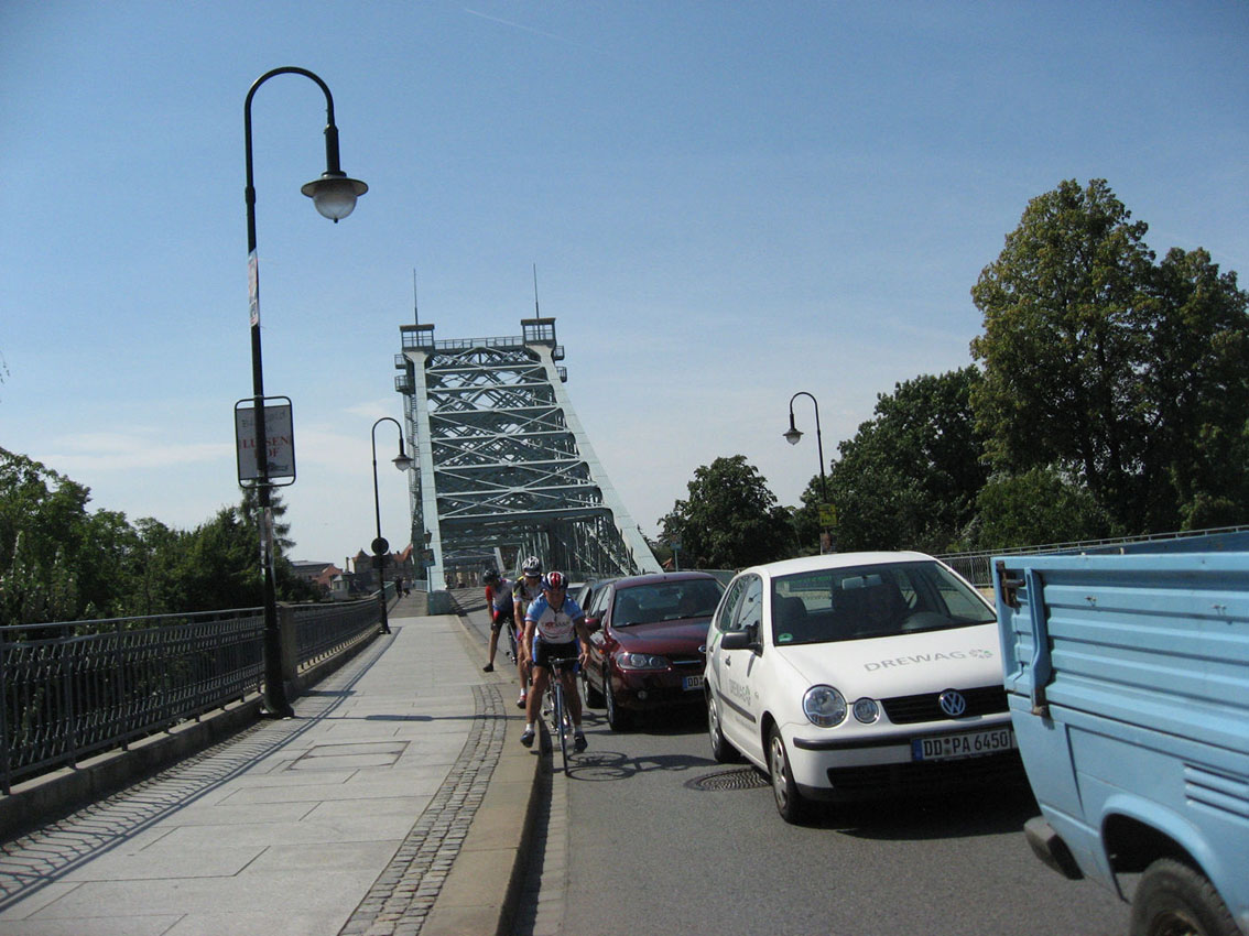 Der Dienstag hatte das Blaue Wunder auf dem Programm und unser Weg führte Richtung Dresden über Lohmen, Hohnstein und Pirna bis zur Elbe bei Pillnitz (mit Schlossbetrachtung und Verpflegungsaufnahme). Mit der Fähre über die Elbe gings den Elberadweg bis zu jenem Blauen Wunder, das die Elbe überspannt und uns wieder auf den Heimweg schickte. Der Anstieg auf die Höhe um wieder Richtung Bautzen zu kommen, führte geradewegs über Radeberg – ein trübes Radeberger hatten wir verdient – um dann eiligst und zügig nach Hause zu kurbeln.
