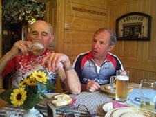 Auf der Königsetappe hatten wir erneut fach- und ortskundige Begleitung vom RSV Bautzen. Werner, ehemaliger und langjähriger Vorsitzender des RSV half bei der Streckenwahl und wurde nicht müde seine Heimat wortreich nahe zu bringen. 140 km und 1.800 Hm standen am Schluss auf den Tachos und die Radgruppe war müde, aber mit sich und der Welt zufrieden. Bei Krauses wurde gespeist und das aufgelaufene Bildmaterial gesichtet.